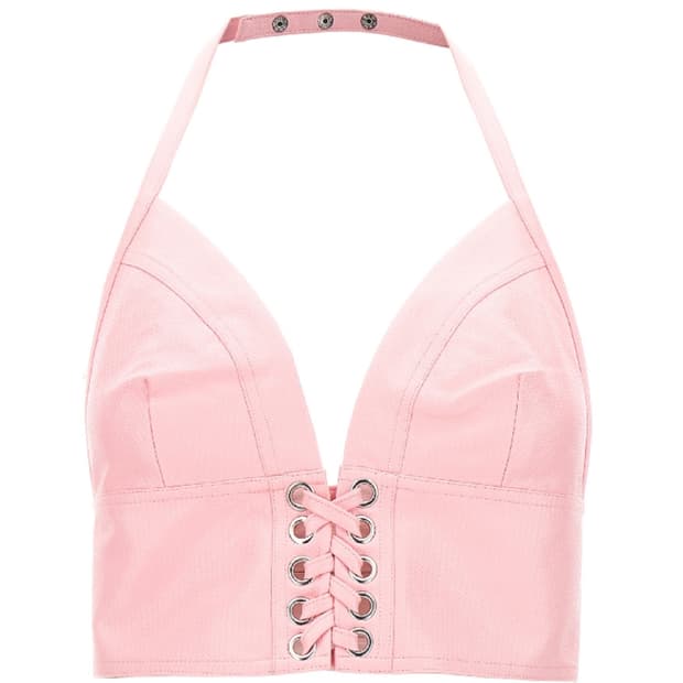 • 로테이트 레이스업 홀터넥 탑 핑크