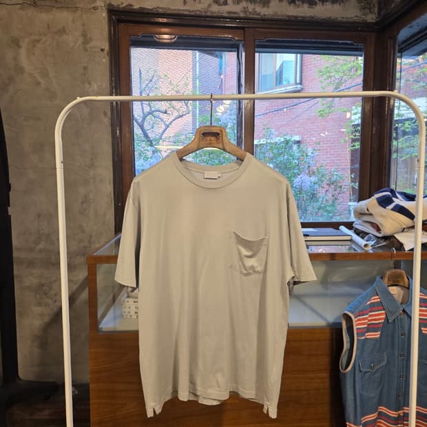 준지 자수 반팔 티셔츠 그레이 극미중고