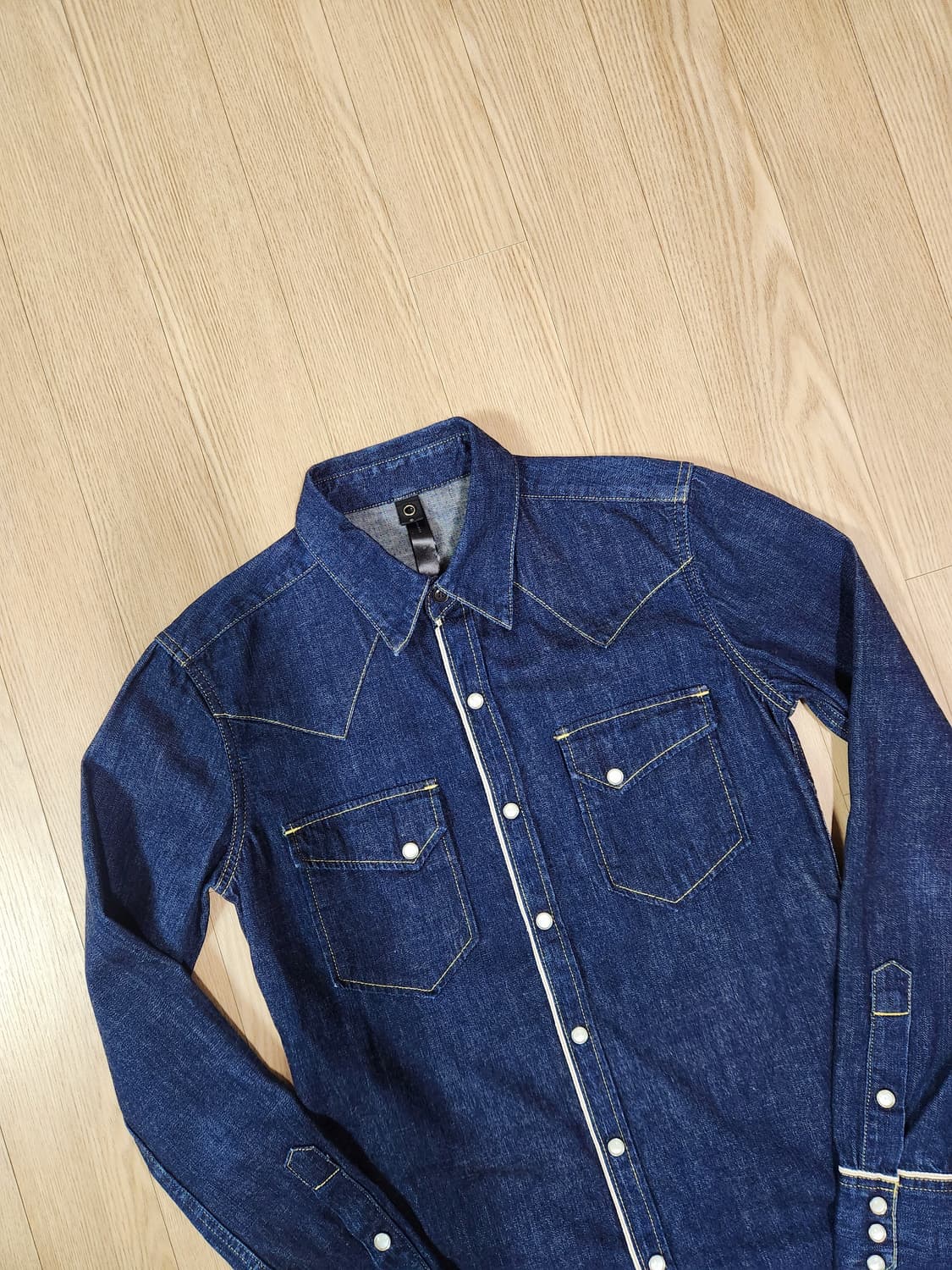 사이즈 : 국내 95s / 44-55(어깨 42cm 가슴 46cm 팔길이 66cm 총장 69cm) 배송방법 : 운포 탄탄한 셀비지 데님과 좋은 봉제 그리고 일본에서 생산된 웨스턴 셔츠입니다. 남녀 공용. 스몰 사이즈로 여성 분에게 추천드립니다.