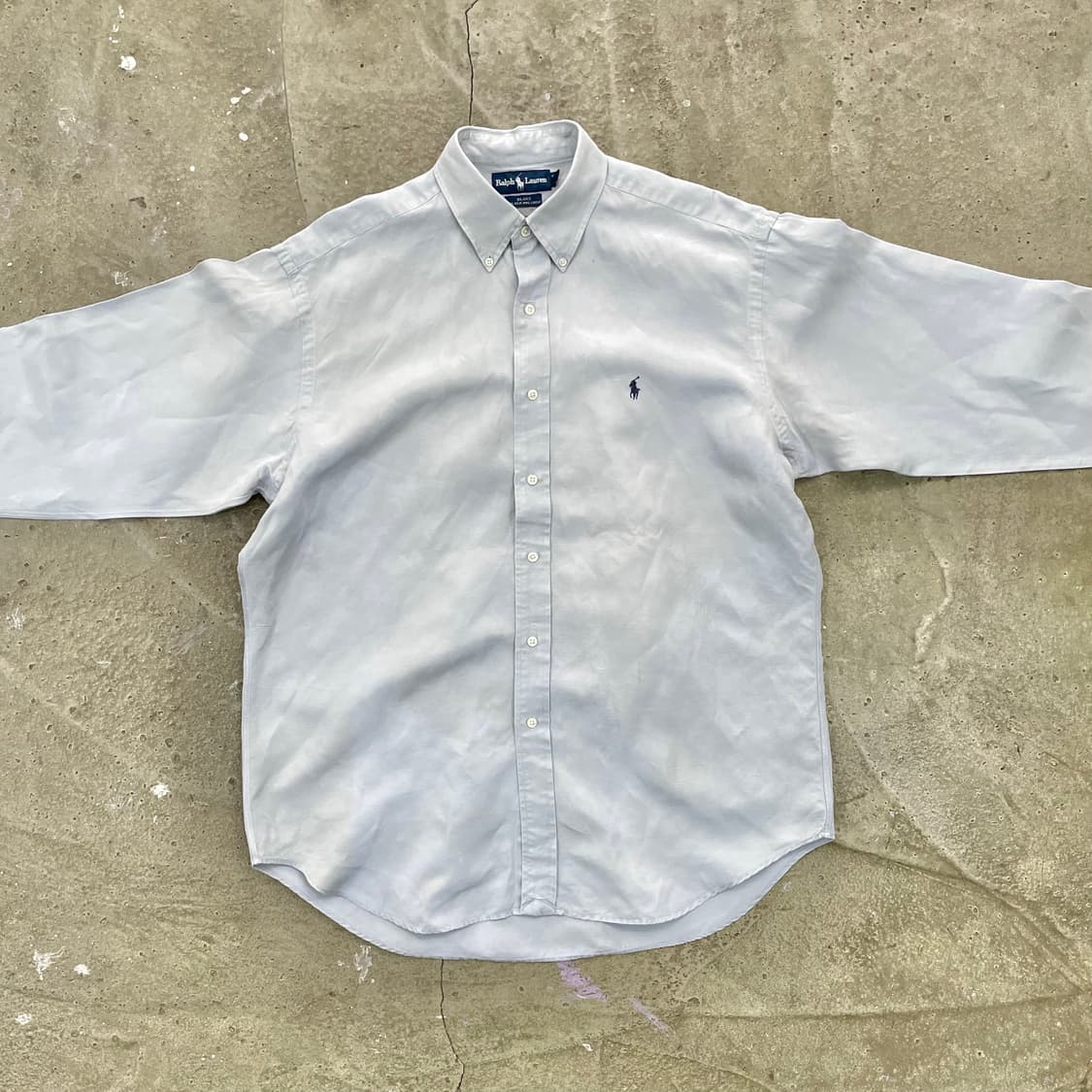 구매시 배송비 2,000원 추가됩니다. 세탁 완료된 제품입니다. 90년대 폴로 버튼다운 셔츠입니다. BLAKE 라인의 넉넉한 핏으로 L사이즈 표기지만 실측 XL-XXL 정도입니다. 실크/린넨 혼방 원단으로 시원해보이지만 부드러운 실크의 무드가 살아있는 나이스한 제품이에요. :D 사이즈 L 가슴 69cm 총길이 88cm 어깨 52cm 팔길이 62cm 상세사진 및 문의사항 언제든 편하게 톡 주세요. 유즈드 아이템 특성상 확인되지 못한 오염 및 데미지가 있을 수 있습니다. 교환 및 환불 불가하오니 이 점 유념하여 구매해주시길 부탁드려요! 🙇🏻‍♂️