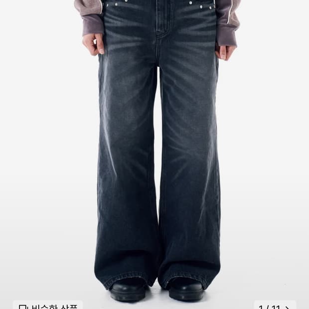 미세키서울 포켓 데님 와이드팬츠 차콜