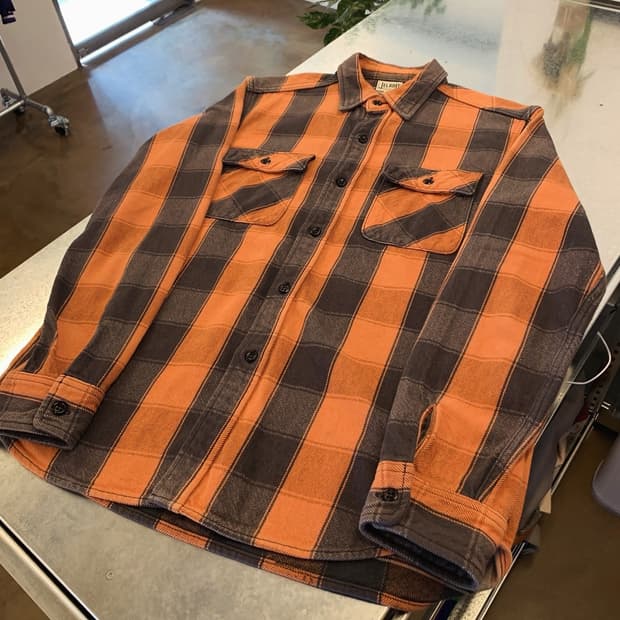 이제는 어엿한 빈티지로써 인정 받은 것을 반증하는, 웨어하우스에서도 복각을 하기에 이르게 된 옛 드님, 그 오리존티기의 것으로써 이 시기의 것은 데님팬츠도 물론 귀하지만 그 외의 카테고리는 더욱 만나기 어렵습니다. 요크부터 가슴 포켓의 플랩까지 감히 대체품이 없을 독보적인 쉐입을 가졌습니다. 데님과 특히 특화된 컬러 조합의 체크패턴도 만족스럽습니다. 오염이나 데미지 없이 경미한 착용감 정도인 준수한 컨디션으로 셔츠 기준 105 입으시는 분께 정말 남성미 넘치는 실루엣을 보여줄 실측과 체감의 L 사이즈입니다. 개인적으로는 더블알엘에서 내는 작금의 체크 웨스턴보다 색배열부터 디자인에 이르기까지 훨씬 멋지다고 생각합니다. 어깨 47.5 가슴 57 팔길이 63 총길이 73 (뒷면기준 카라제외)