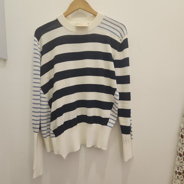 코스 스트라이프 맨투맨입니다. 한번 입고 안입게 되어 저렴하게 올립니다. 사이즈 M입니다. 가슴 55 총장 62