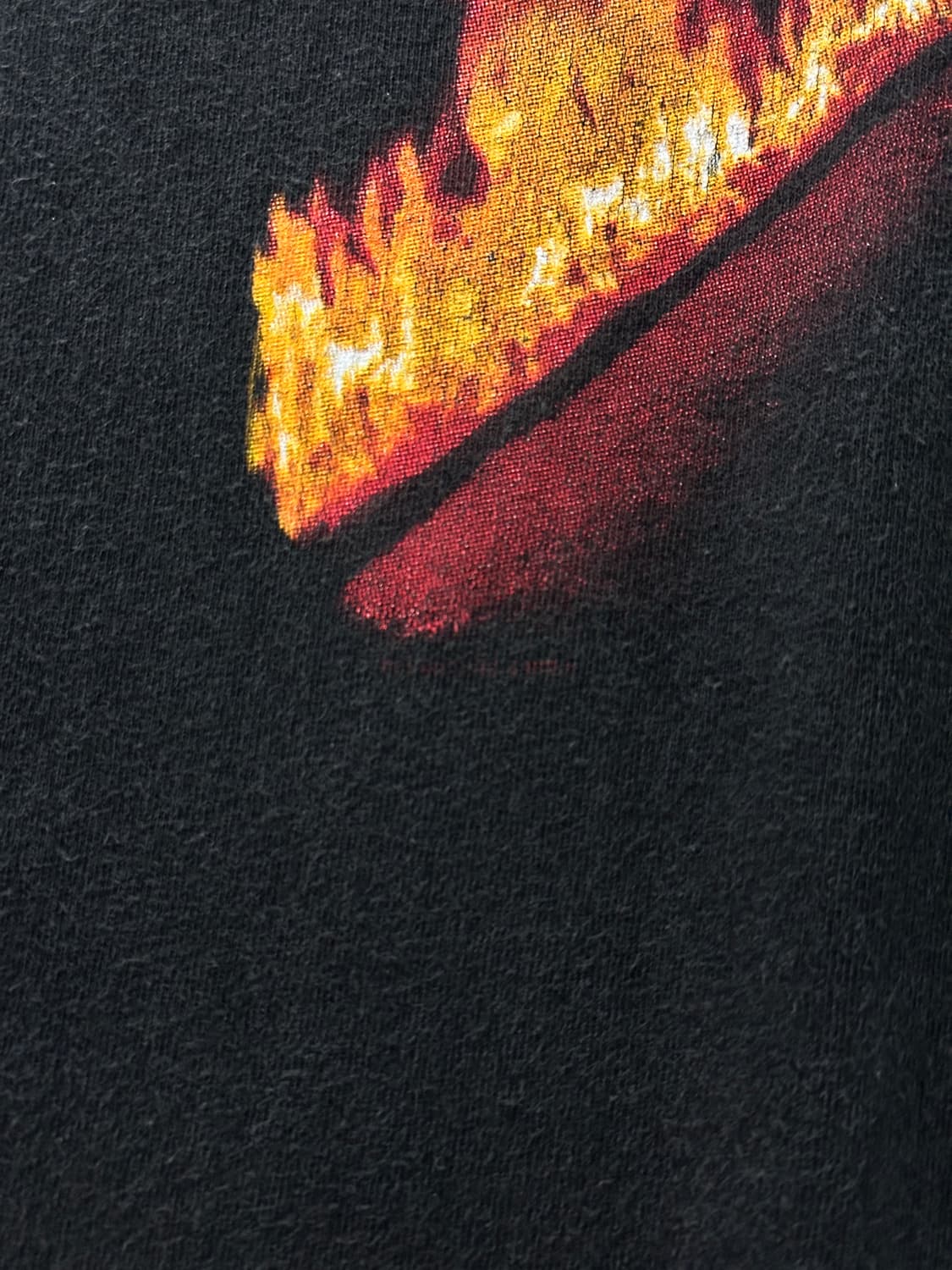 (Rare)90s Vintage Back To The Future Movie T-shirt🎥 자연스러운 워싱감의 블랙 컬러 베이스에 80년대 개봉한 SF 명작 영화 백투더퓨처의 오리지널 그래픽이 돋보이는 빈티지 티셔츠 입니다🎬 인위적이지 않은 크랙 및 워싱, 우수한 퀄리티의 스크린 프린팅 기법이 매력적인 제품이며, 해외에서 60만원 대에 판매되는 높은 금액대의 제품으로 소장가치가 있는 제품 입니다🪄 전문 클리닝 완료한 제품입니다🫧 size - XL (어깨-53cm, 가슴-53cm, 총장-79cm, 팔-22cm)