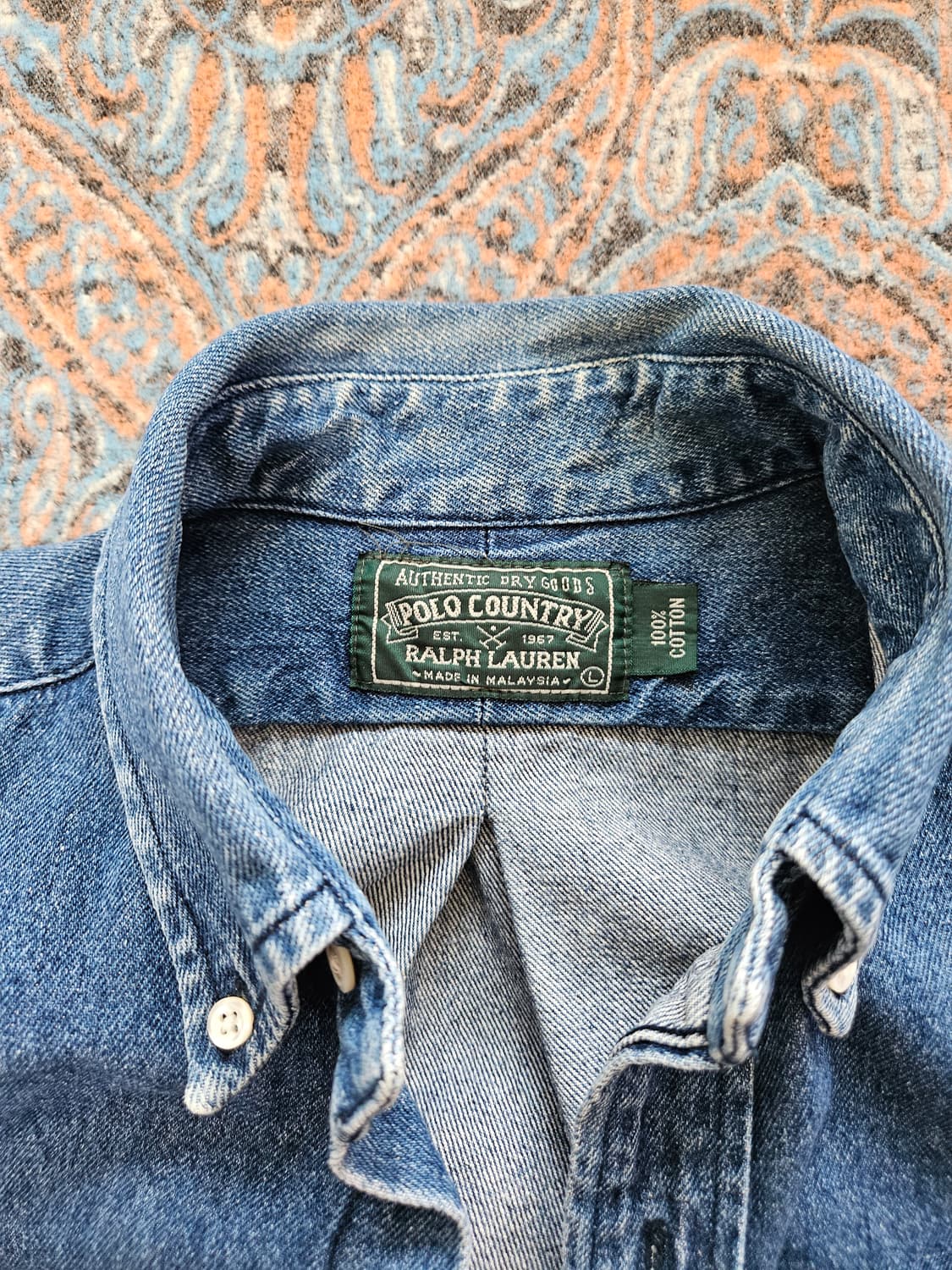 폴로 컨트리 데님 셔츠 Polo country denim shirts RRL의 전신인 구 시대의 아낌없이 역량을 투입해 만들던 polo사의 country 라인 입니다. 현행의 country라인과는 차별화가 있으며, 당시 년도별 개체별 로고 자수의 퀄리티 차이가 있습니다. 저 역시 해당 개체를 처음 구매할 때만 해도, 구매 후 포니 로고가 이상하여 지식인 및 정가품 판별 카페에 문의를 하였던 적이 있는 개체였습니다. 다행히 정품 판별을 받았고, 해당 개체의 특이함으로 오히려 타 제품과의 변별력이 있다고 판단해 애정 했던 제품 입니다. neck label 확인 시 기존의 reg u.s patent office가 아닌 made in malaysia 모델입니다. (제 제품중 다른 폴로컨트리 넥 라벨 참조) 착용시 넣어 입어도, 빼 입어도 나쁘지 않은 핏이며, 반바지에 무심하게 팔을 롤업해서 입어도 나쁘지 않습니다. 세월이 무색하게 큰 에이징, 큰 색빠짐이 없이 모두 제치인 상태 입니다. 📏 SIZE는 표기 L / 가슴 63 / 총장 앞73, 뒤88 / 팔 63 / 실사이즈 100 ~ 105 감 입니다 ⁂ 모든 제품은 세탁 및 고온스팀 완료된 제품입니다 ⁂ 실측은 측정 방법에 따라 오차가 있을 수 있습니다 ⁂ 제품은 전부 소장품 혹은 하나하나 직접 구매해온 제품 입니다. ⁂ 제품 특성상 교환/환불은 어렵습니다. 신중한 구매 부탁드립니다. ☘ Price : 8.8 🌊 instagram : swirl_seoul 감사합니다