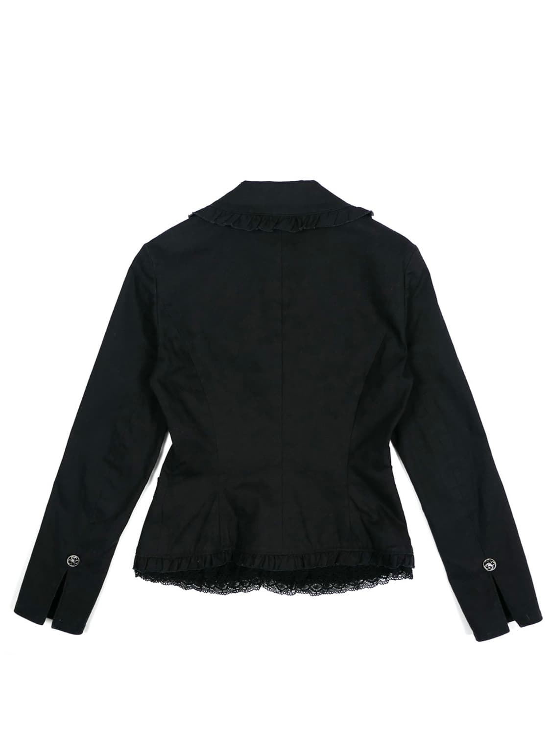일본 우먼웨어 레스트로즈 자켓입니다. 허리 라인이 자연스럽게 잡힌 슬림핏 실루엣입니다. 러플과 레이스 디테일이 돋보입니다. 좋은 컨디션입니다. FABRIC : cotton90% linen8% polyurethan2% SIZE(S) : 총장 51 | 어깨 37 | 가슴 39 | 소매 55 (cm)