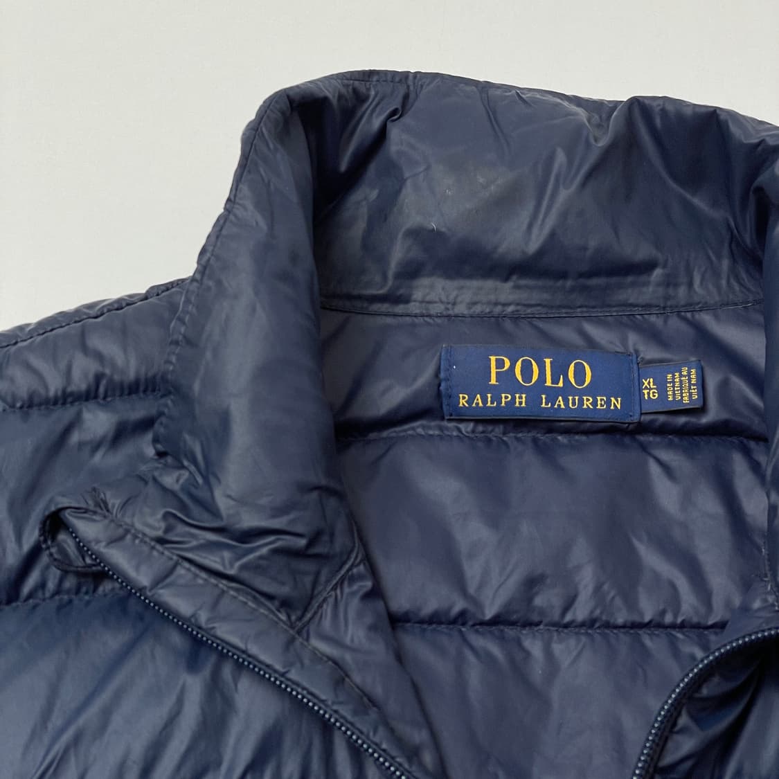 [중고] 폴로 랄프로렌 패딩조끼 베스트 네이비 XL 중고상품으로 사용감있으며 세탁 완료되었습니다. •표기 사이즈 : XL •단면 실측 (오차범위 1-3cm) 어깨 44 / 가슴 60 / 총장 69 -결제 확인 후 다음날 택배 접수 -일반 택배 무료 발송 (주말, 공휴일 제외) -제주•산간지역 택배비 별도 -직거래, 네고, 착샷, 교신 불가 * 구매 전 반드시 읽어주세요 빈티지 제품 특성상 판매자가 발견하지 못한 부분에 이염, 오염, 올풀림 등이 있을 수 있습니다. 모니터 해상도에 따라 실제 색상과 차이가 있을 수 있습니다. 이에 대하여 교환 및 환불 불가함을 알려드리며, 구매에 신중하여 주시길 바랍니다. #가벼운 #따뜻한 #조끼 #간절기 #환절기 #폴로패딩조끼 #랄뽕 #폴로랄프로렌 G2-B16