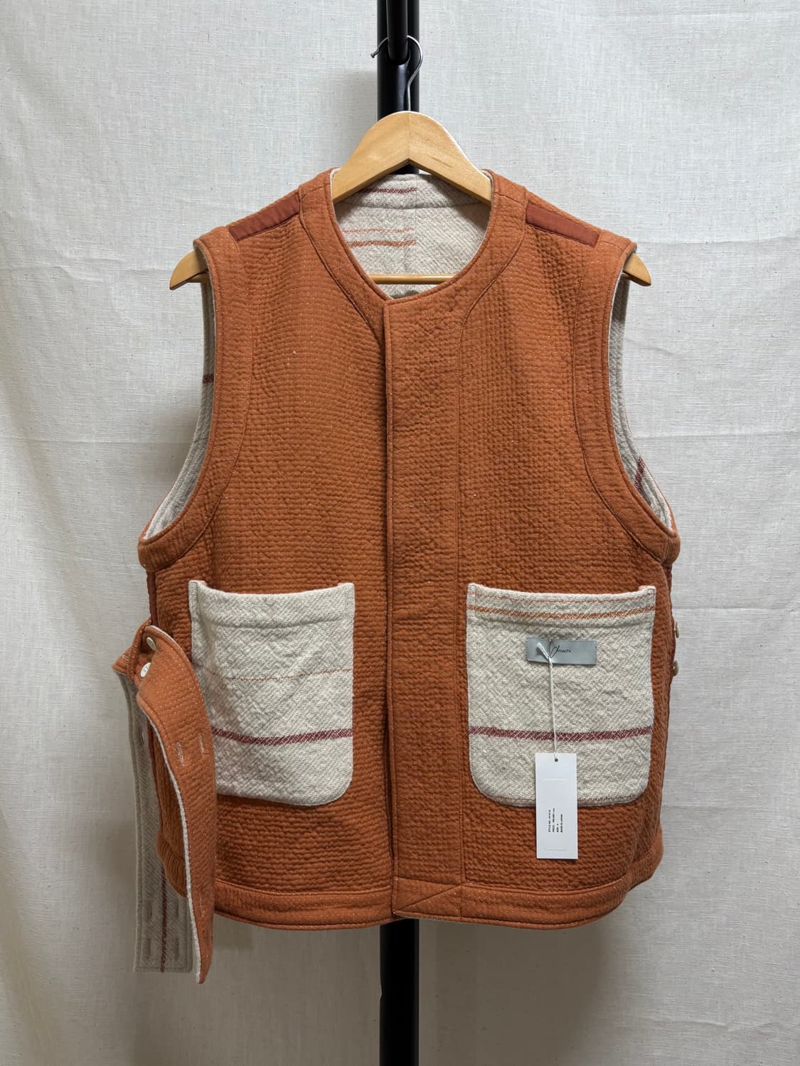 * 등록되어 있지 않은 브랜드기에 대체합니다 - 아마치의 울 코튼 베스트 - 리버서블로 착용 가능 - 재밌는 텍스쳐로 표현된 원단 - 시착 1회, 택 제거되지 않은 우수한 컨디션 size : 4(어깨42 가슴58 총장63) condition : 9/10 price : 280,000