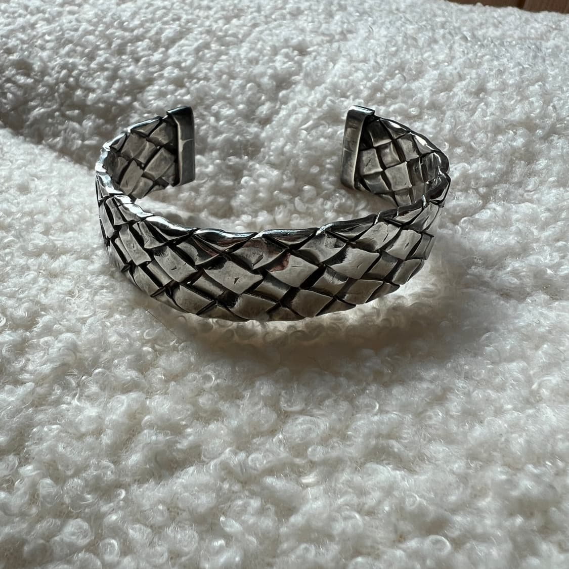 United arrows 위빙 뱅글입니다. 두깨 1.5 , 무게40g 으로 두툼 묵직합니다. 찍힘이나 약간의 변색등 사용감 있습니다.