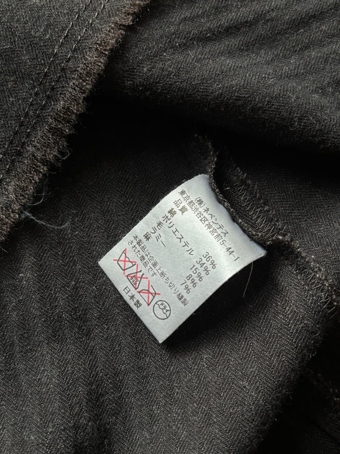 보슬보슬한 테슬같은 텍스쳐의 라인이 포인트 입니다. 핏은 뿅 하고 에이라인으로 떨어지면서 앞패널은 허리까지 뒤패널은 엉덩이를 살짝 가려주는 길이감입니다. 벨기에 빈티지 샵에서 샀어요 ..! 아아주 약간의 줄무늬 같은 패턴이 보이는 패브릭입니다.