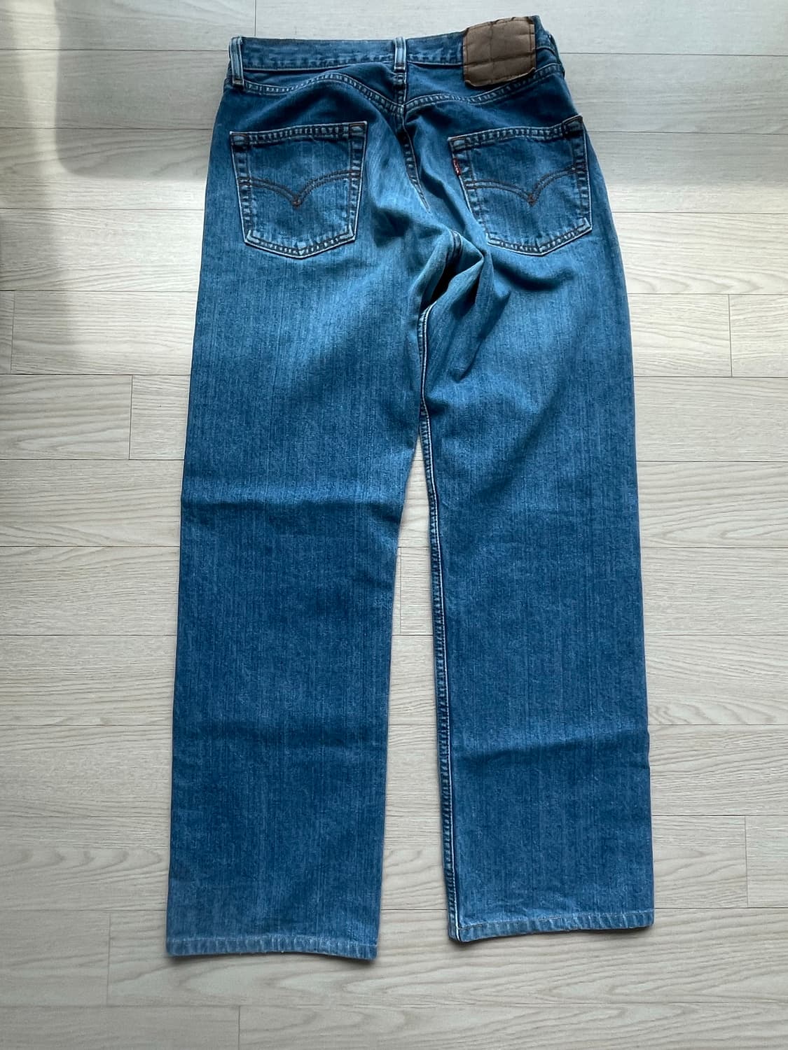 90년대 리바이스 550입니다 501과는 다르게 지퍼가 있고 약간 더 여유로운 핏으로 예쁘게 입으실 수 있습니다 사용감 있음