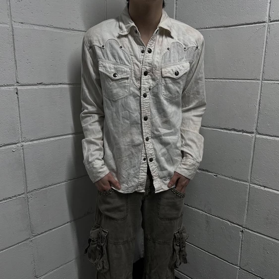 “ 00’s In the attic washed western shirts “ . . . . * 이염처럼 얼룩져 보일 수도 있습니다만 이염과 오염이 아닌 본래의 디자인인 점 착오 없으시길 바랍니다. * Price : 7.5 Size 어깨 46 가슴 47 총기장 57 . . . . . . *condition 8/10* ✚ 빈티지 특성상 교환 , 반품이 어려우니 신중한 구매 부탁드립니다! ✚