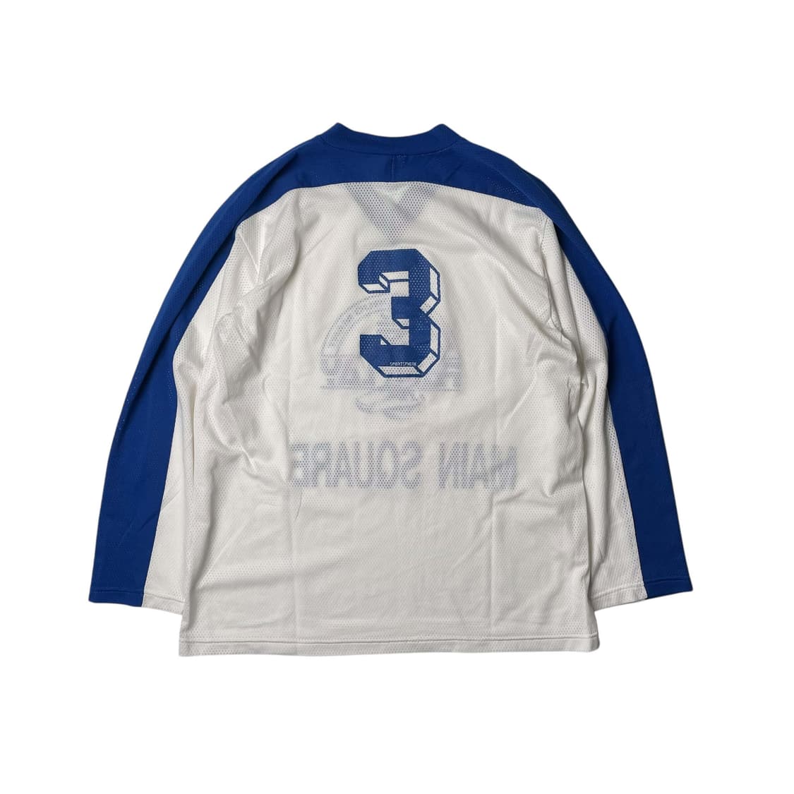 FAIRPLAY print mesh long sleeve 입니다. 매쉬 소재, 전 후면 파란색 프린팅으로 포인트를 준 롱 슬리브 입니다. 어깨 57 가슴 58 총장 76 팔길이 60