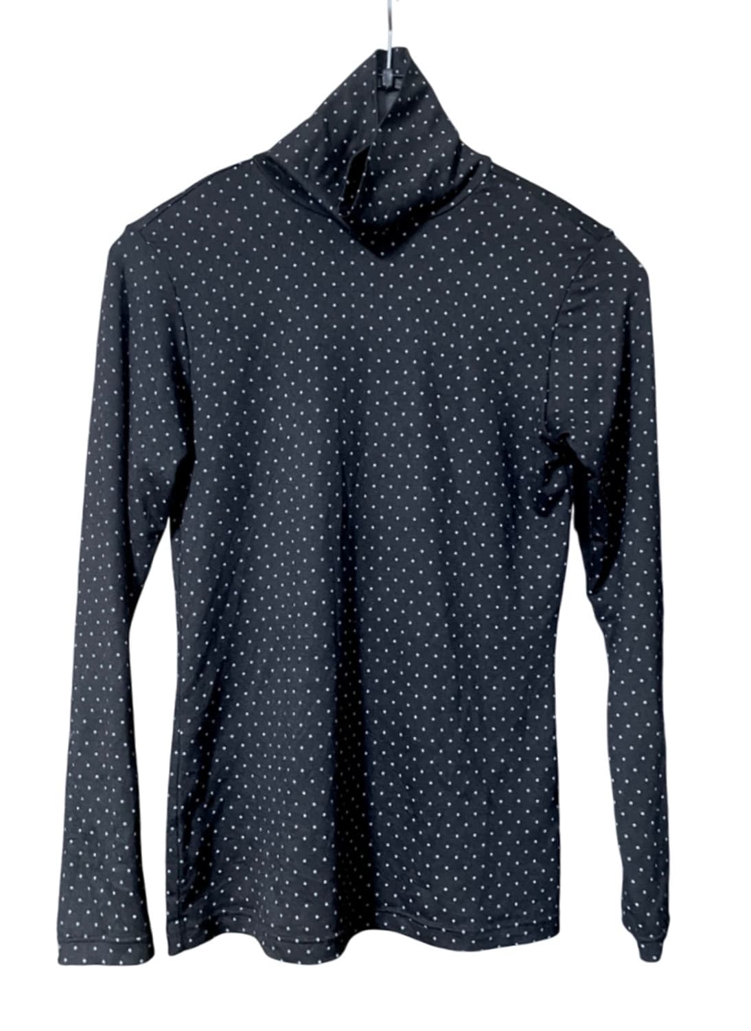원피스나 니트에 레이어드 하기 좋은 도트 목폴라 티셔츠입니다. 원피스에 매치해도 좋고, 단독으로 입으셔도 좋아요 💗 신축성 있는 얇은 코튼 소재로 착용했을 때 까끌하지 않고 레이어드하기에도 편합니다! 가단 41cm 총장 58cm