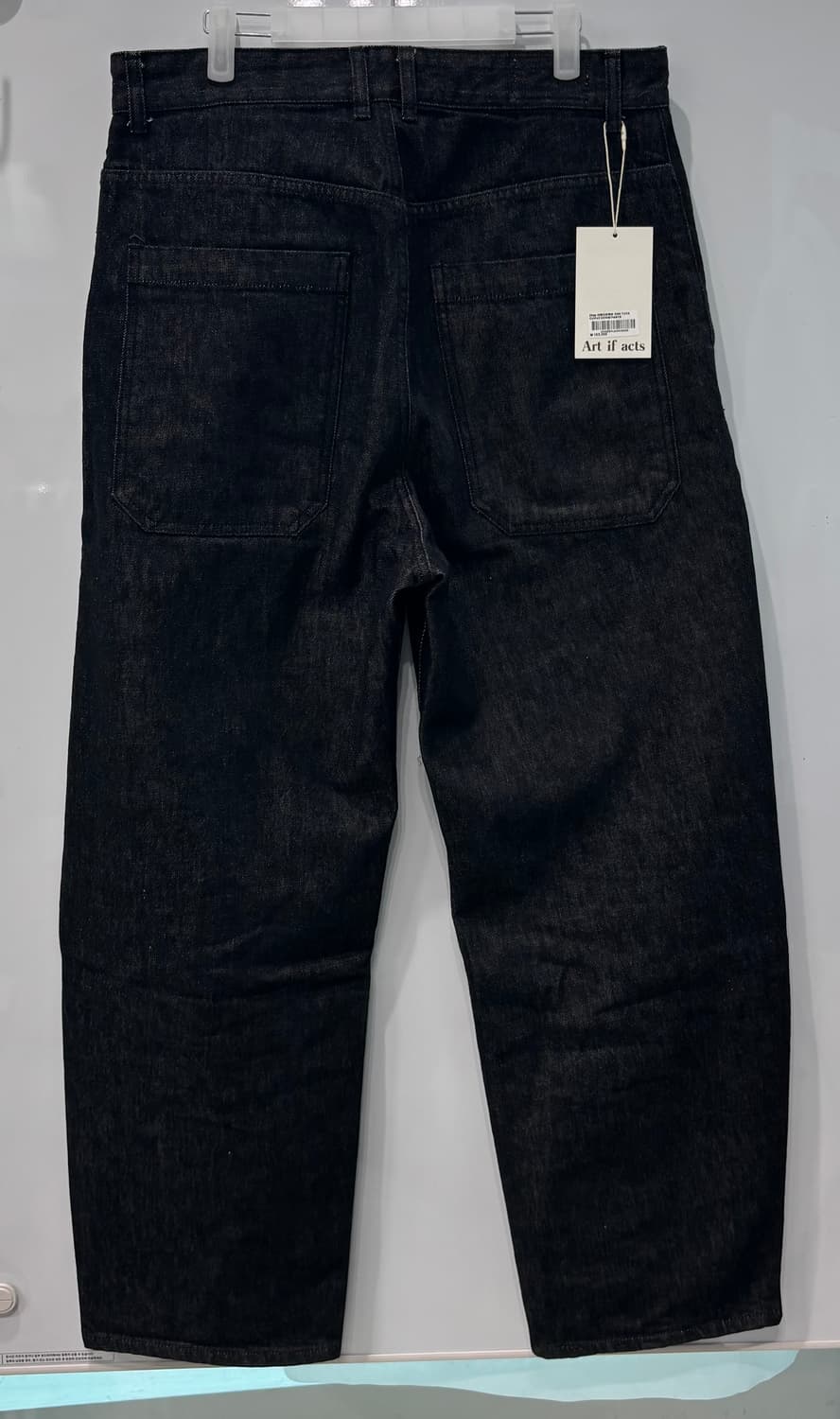 - 와이드 커브드 실루엣의 데님 팬츠 - 오카야마산 13oz 데님 원단 - 원 턱 디테일 - 뒷 요크와 포켓 M : 허리 40 / 밑위 35.5 / 밑단 22 / 총장 105 *컨디션은 사진과 동일한 상태로, 사진 참고해주시면 됩니다. *택 및 폴리백 모두 있으며 배송시 사진 그대로 배송합니다.