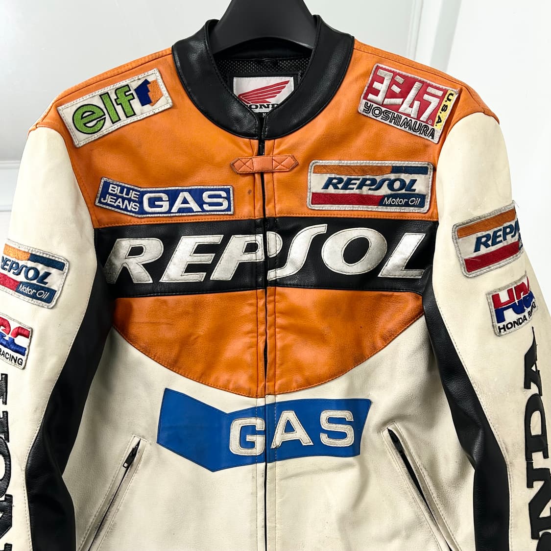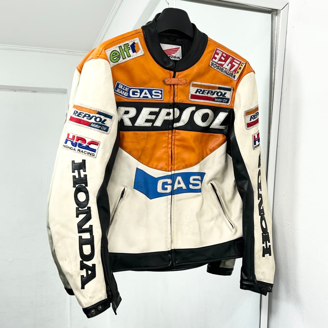 #honda 혼다 Repsol 레더 레이싱 자켓 Size:M ⠀ Price:13 ⠀ (어깨/가슴/총장) 50/54/64 (cm) Condition 8/10 -후면부 얼룩 등 경미한 얼룩 존재로 저렴히 판매 -중국발이 아닌 국내생산 제품, 표기보다 여유로운 사이즈 ⠀ #burnout_sell