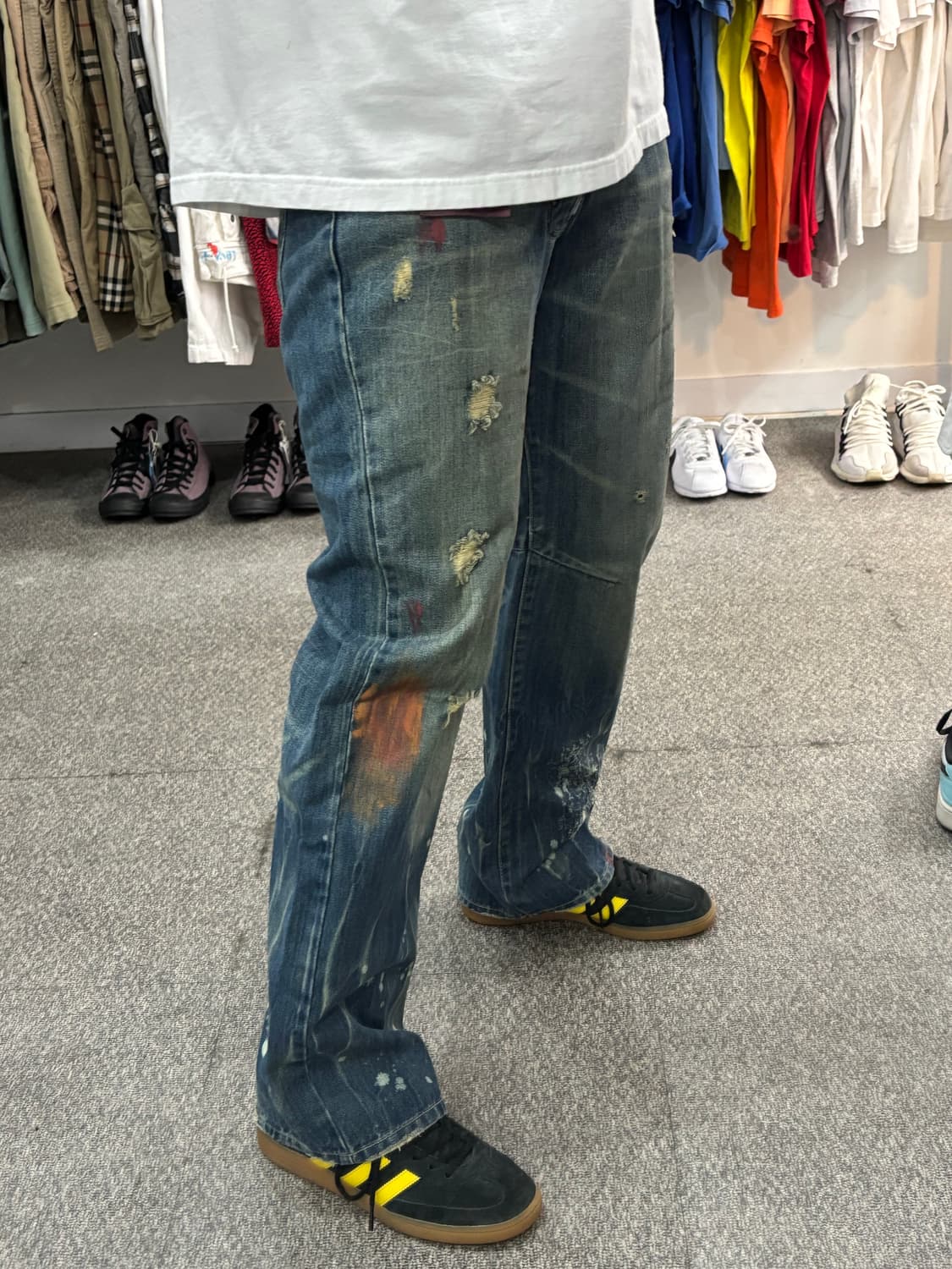 Prps 새상품 페인트 워싱 데님팬츠 Prps는 02년도에 미국에서 나이키 디자이너로 활동했던 Donwan이 설립한 회사입니다. 최고의 데님을 만들겠다는 포부로 시작해 일본산 셀비지 데님을 사용하며 일본의 전통적인 방식으로 제작하는 브랜드입니다. 빈티지하면서 하드엔드한 스타일과 워싱이나 디테일 등으로 셀럽들이 즐겨입는 브랜드의 팬츠입니다. 사이즈 : 32 허리단면 42 총장 108 밑단 24 밑위 30 허벅지 31 가격 : 9 택배비 : 3000원 제주도 6000원 모델 : 179 / 162