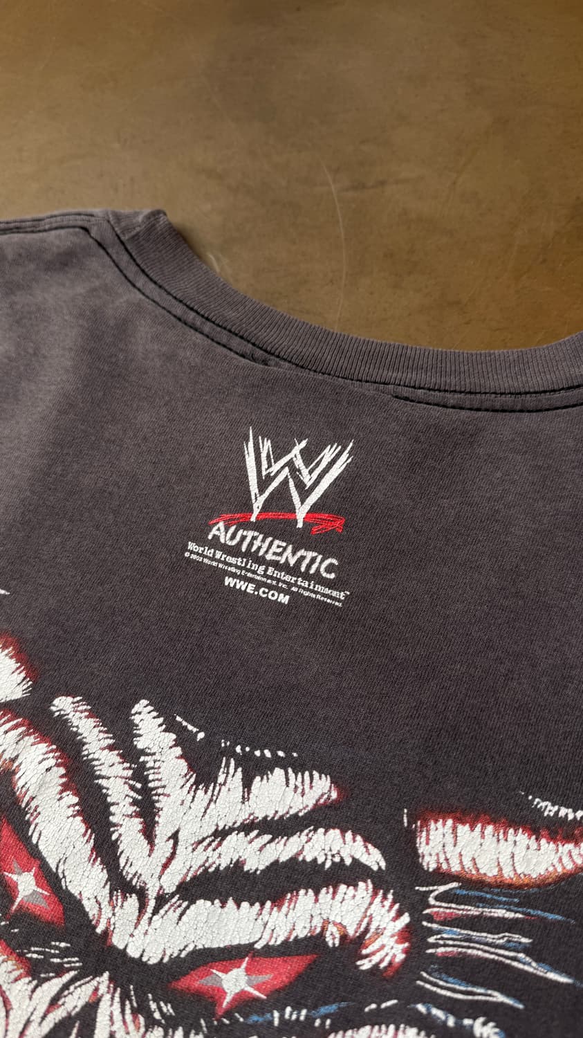WWE 03년도 브룩레스너 티셔츠로 전반적으로 페이딩과 워싱이 잘 들어간 제품입니다. 어깨 : 53 가슴 : 55 총장 : 71 가격 : 135000 Notice - 빈티지 제품 특성상 미처 확인되지 못한 오염 및 하자가 있을수 있는 점 참고 부탁드립니다 - 구매 및 문의는 DM 혹은 프로필 링크로 부탁드립니다 - 실측 재는 방식에 따라 1~2cm ± 오차 범위 존재할 수 있습니다