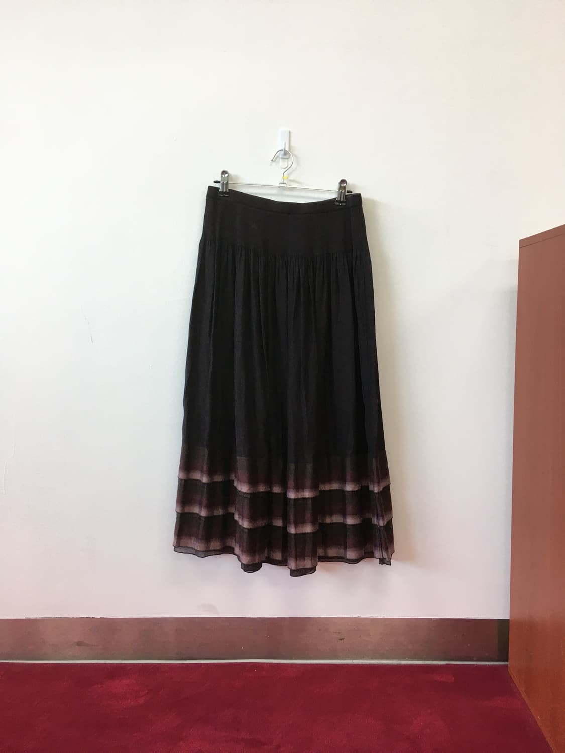 〓⎻ size- 총장-허리 : 75-33 〓⎻ condition 8/10 미세이염 〓⎻ Japanese vintage 레이온71 폴리에스테르17 나일론11 폴리우레탄1 안감O 허리밴딩(~56) 차분한 다크 브라운 컬러에 퍼플빛 그라데이션이 감도는 롱 플리츠 스커트입니다 밑단으로 갈수록 진해지는 컬러 배색과 은은한 광택감이 분위기 있는 룩을 완성해줍니다 ♥ 이염된 부분은 치마가 접히는 안쪽에 위치해 착용 시 거의 보이지 않습니다! ⌲5만원 이상 무료배송, 제주 도서산간 지역 7만원 이상 무료배송 ⌲ 사이즈와 오염/하자/데미지 꼼꼼히 체크 해주세요! 빈티지 특성 상 착용 여부를 알 수 없기 때문에 교환&환불이 불가합니다.