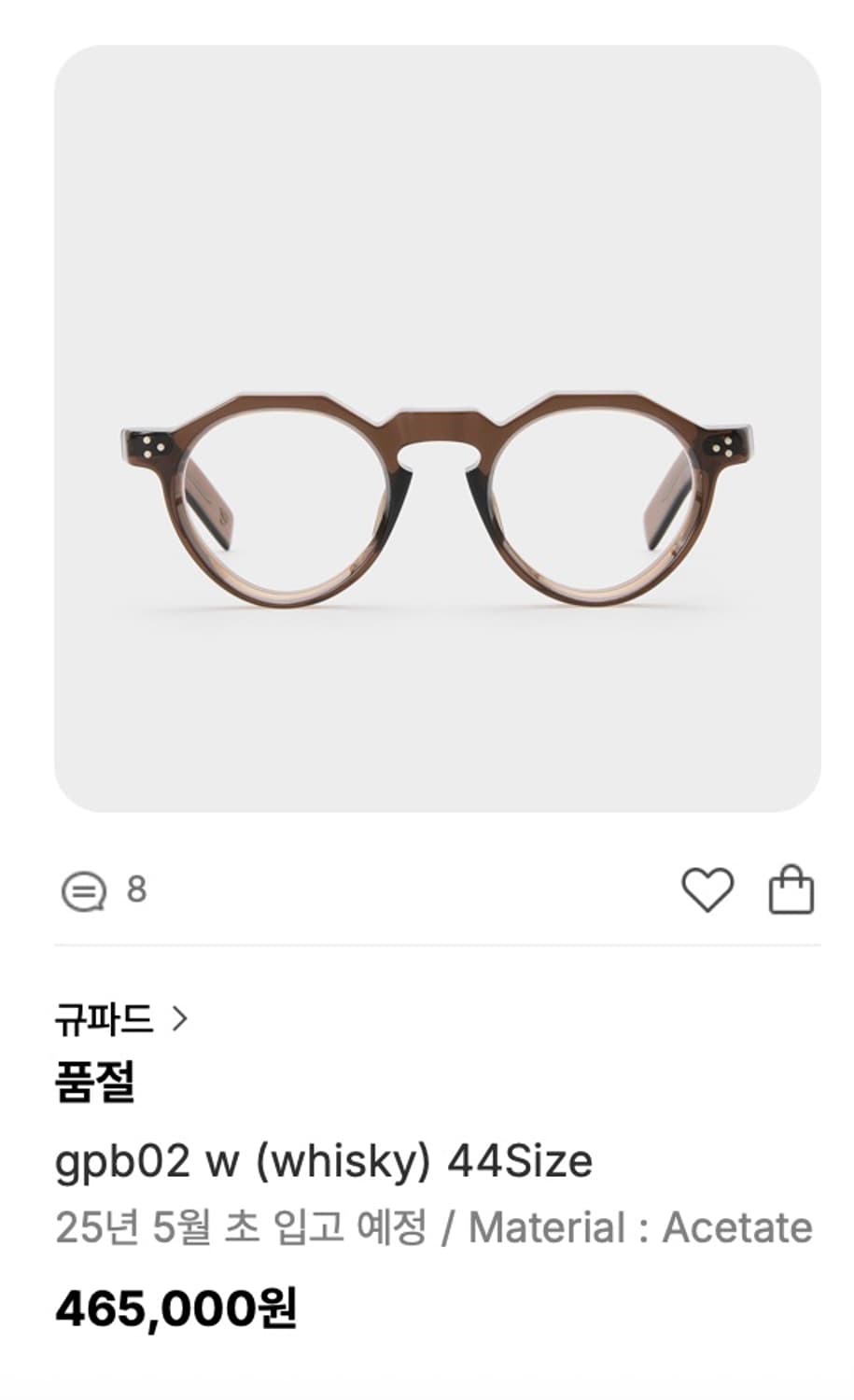 이태원블링크안경에서 23년 6월경 구매한 제품입니다. gpb-02 위스키 컬러 제품이고, 현재 공홈에서는 품절상태입니다. 정상가 42만원 주고 구매했고, 정확히 4~5회 정도 착용했습니다. 안경이 많아 더이상 손이 잘가지 않게되어 내놓습니다. 구매 시, 이태원블링크안경에 방문하시면 피팅도 정상적으로 가능하십니다. 택포o