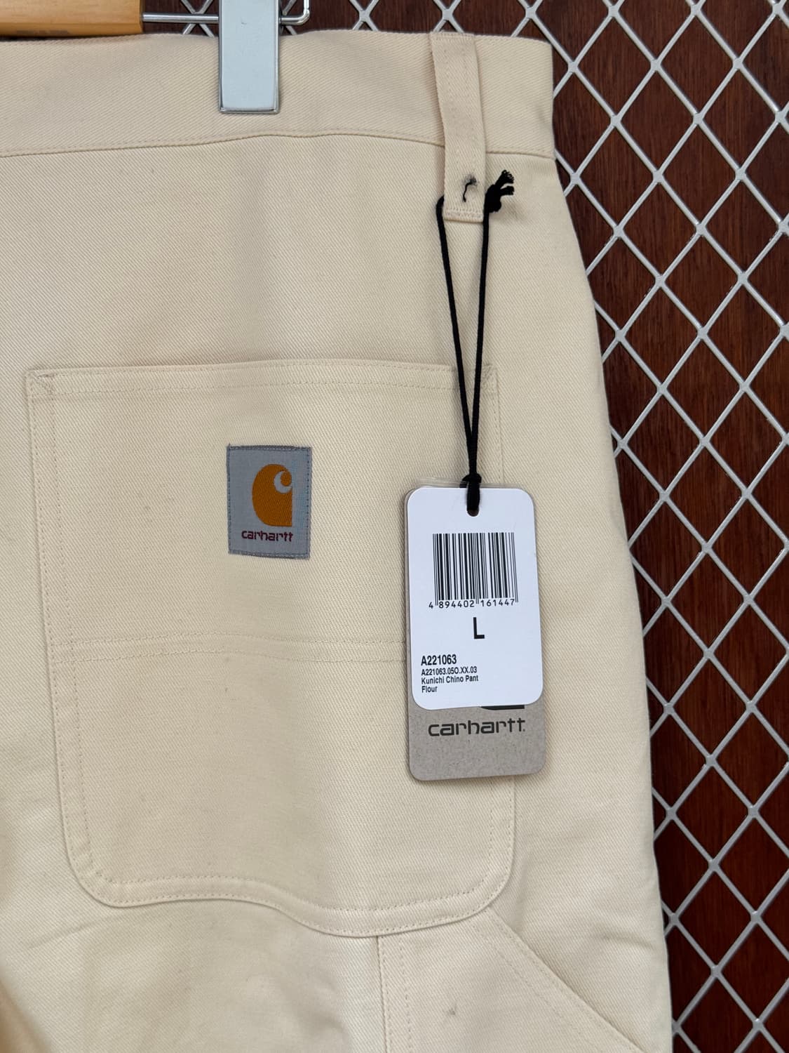 칼하트 쿠니치 치노팬츠 🎃 상태 : 택달린상품 10/10 🎃 사이즈 : 표기상 L 체감상 36인치정도 허리 46 총장 100 밑위 34 허벅지 35 밑단 22 🎃 설명 : 와이드핏에 크림색이라 여기저기 입어주심 됩니다 포켓 디테일도👍 *카드, 네이버페이 결제가능합니다 (문의주세요) *모든 제품 재고는 한개입니다 *사이즈는 실측사이즈 참고해주시면 감사하겠습니다 *빈티지 특성상 미세한향, 오염등이 있을수도 있으니 예민한 분들은 구매 자제해주세요 *교신x 교환x 환불x @fabrik__vintage