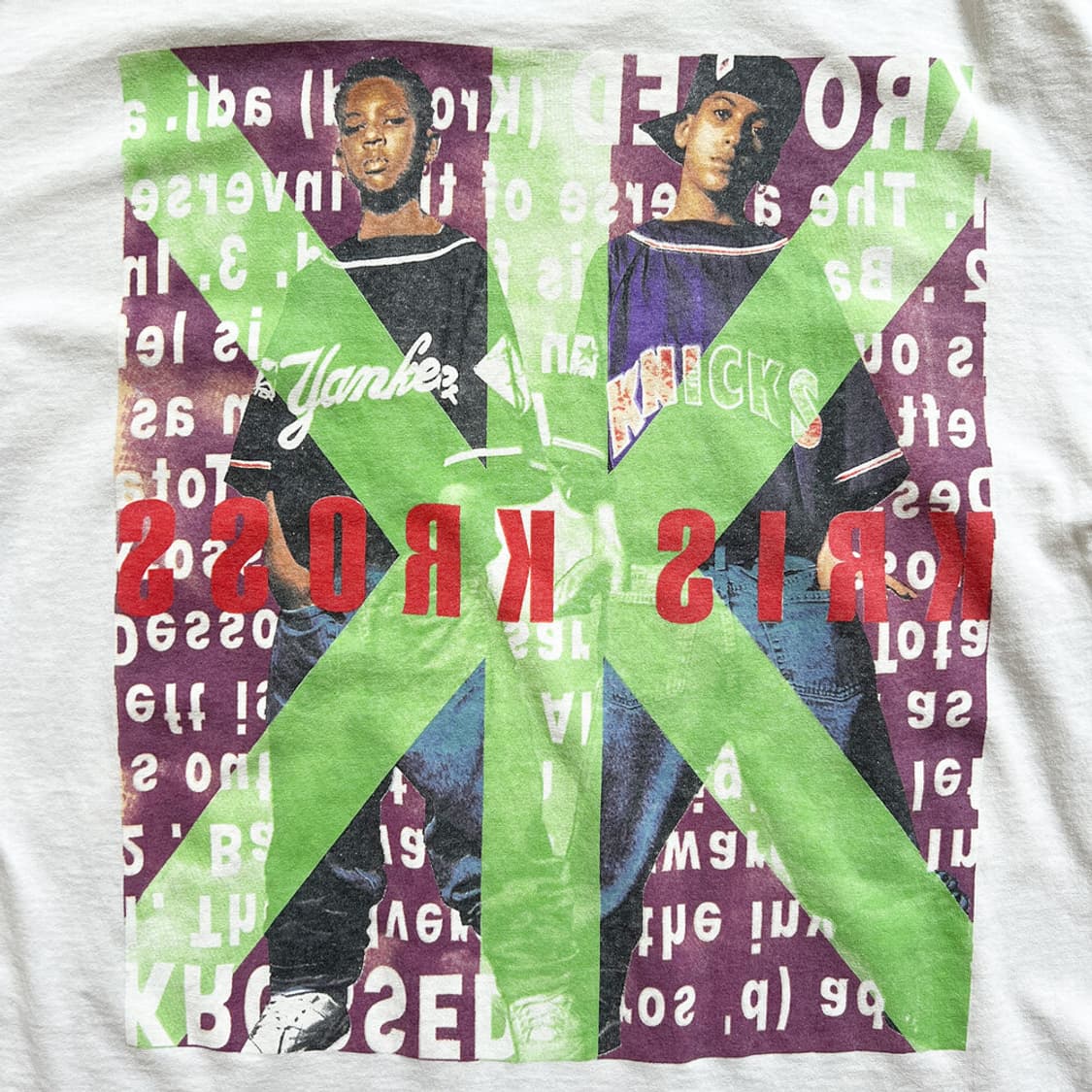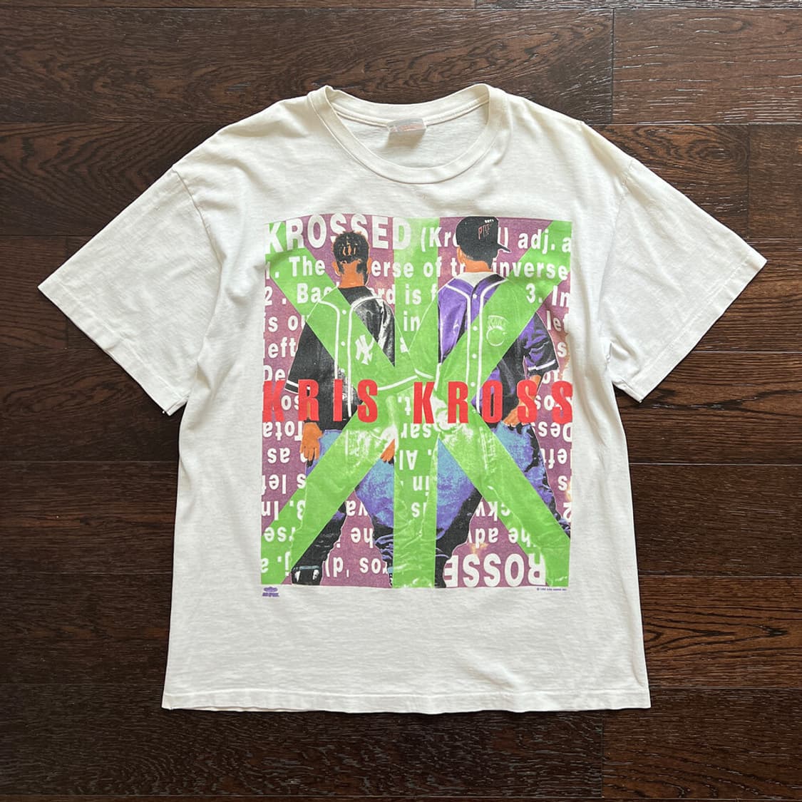 Kriss Kross / 1992 Vintage T-Shirt Size marked: L Pit to pit: 52cm Length: 68cm _ Condition: 빈티지 컨디션. 화이트 컬러 특성상 약간의 변색, 오염. 좌측 어깨 구멍, 핀홀. Note: 빈티지 제품 특성상 사진과 실물의 색상 차이가 있을 수 있습니다. 실측은 측정 방법에 따라 약간의 오차가 있을 수 있습니다. 글로 기재 되지 않은 데미지 있을 수 있습니다. 추가 정보가 필요하신 분은 편하게 문의하세요. 빈티지 문화의 이해를 바탕으로 구매 부탁드립니다.
