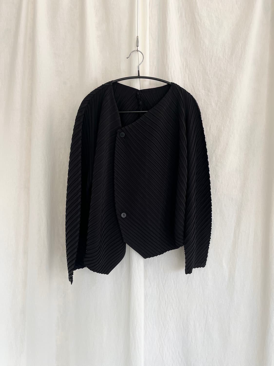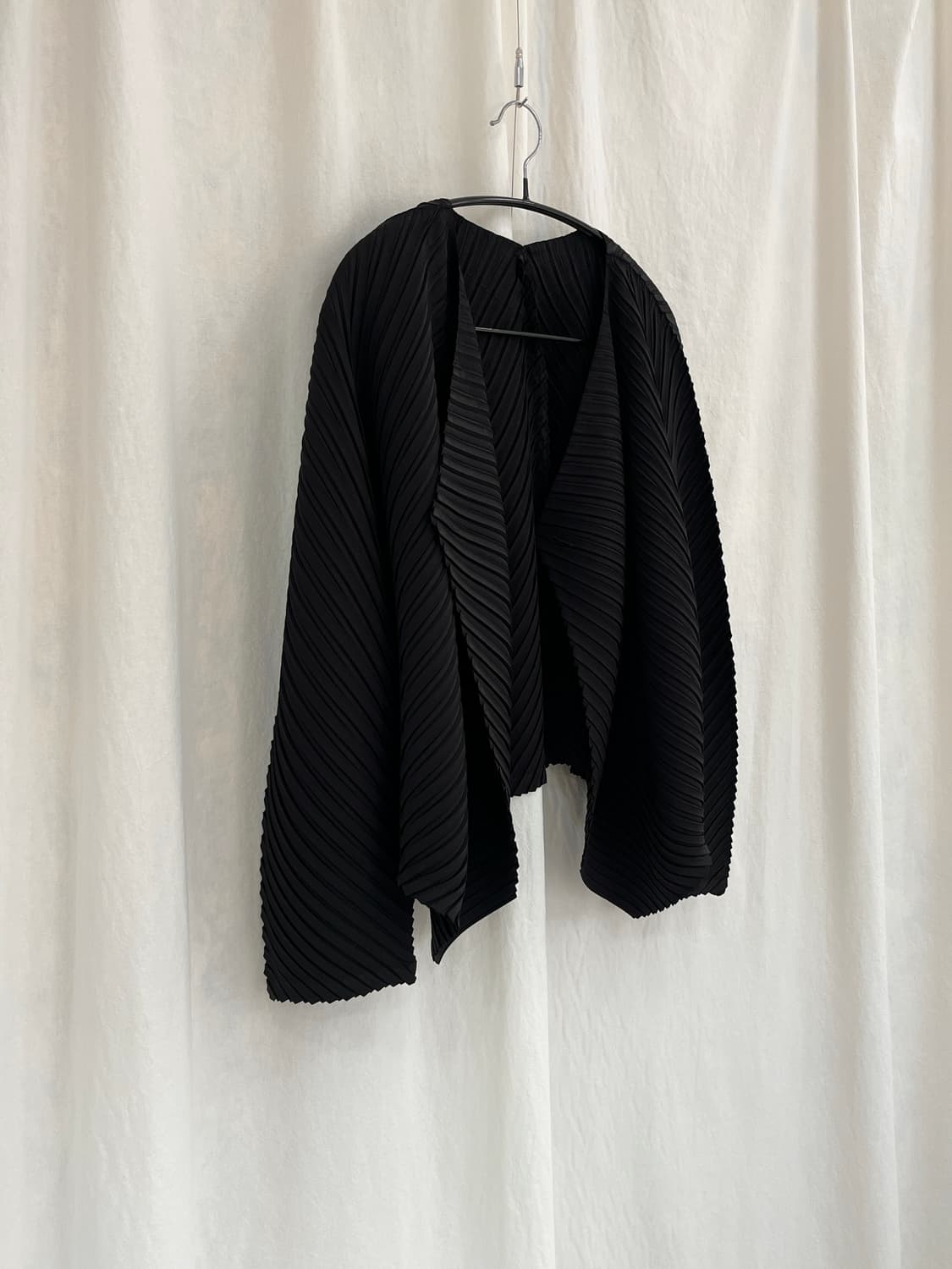 이세이미야케의 아카이브 피스라고 생각됩니다 단 한장의 천으로 만들어진 옷 그러나 어떠한 기교와 기술력보다도 높은 감도의 의류라고 생각하며 절제된 아름다움을 통해 이세이미야케가 지향하고자 했던 미니멀한 미학이 돋보이는 예술적인 작품입니다 착용해보시면 가볍고 부드러운 착용감과 통기성을 통한 시원함, 잘 늘어나는 플리츠 소재의 편안함에 손이 정말 자주가는 옷입니다 메인 라벨 이외에 케어라벨이 제거된 상태입니다 100% 정품이며 가품일 경우 환불 및 보상해드리겠습니다 가슴 단면 : 51cm 팔길이 : 64cm 총장 : 63cm