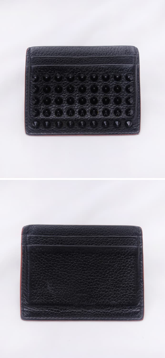 크리스찬 루부탱 (Christian Louboutin) 블랙 키오스 스파이크 레드탭 소프트 그레인 카프스킨 4cc 포켓 카드지갑 당연히 정품 세계 3대 명품 구두 브랜드라고 불리는 크리스찬 부루탱의 시그니쳐 스타일 카드지갑 입니다. 부루탱의 시그니쳐 스타일인 키오스 스파이크 장식과 루부탱 구두의 트레이드 마크가 된 레드아웃솔을 응용한 사이드 및 내부 안감 레드 컬러 배색등 브랜드 아이덴티티 가득한 디자인 으로 과도한 로고 플레이 없이 브랜드 시그니쳐 스타일로 아는 사람은 알 수 있는 멋스럽고 아이코닉한 스타일 입니다. 부드럽고 유연한 촉감좋은 소프트 카프스킨 (송아지가죽) 소재에 앞.뒤로 카드슬롯 2개씩 총 4개 있고 가운데 지폐 및 영수증등 접어서 보관할 수 있는 포켓 있습니다. 자연스러운 사용감 정도 있으나 다른 지갑들 많아 돌려가며 쓰는 편이라 큰 파손.훼손 없이 상태 양호합니다. 직거래 장위동 원천주유소인근 가능 중고 제품들이니 더 꼼꼼히 잘 보시라고 나름 신경써서 사진 찍어 올립니다. 사진 및 설명 도용하는 되팔이 및 3자 거래 사기꾼들 발견즉시 신고 및 차단.박제 합니다. 정리 처분 목적이라 빠른 거래나 복수 구매시 적당히 절충 가능합니다