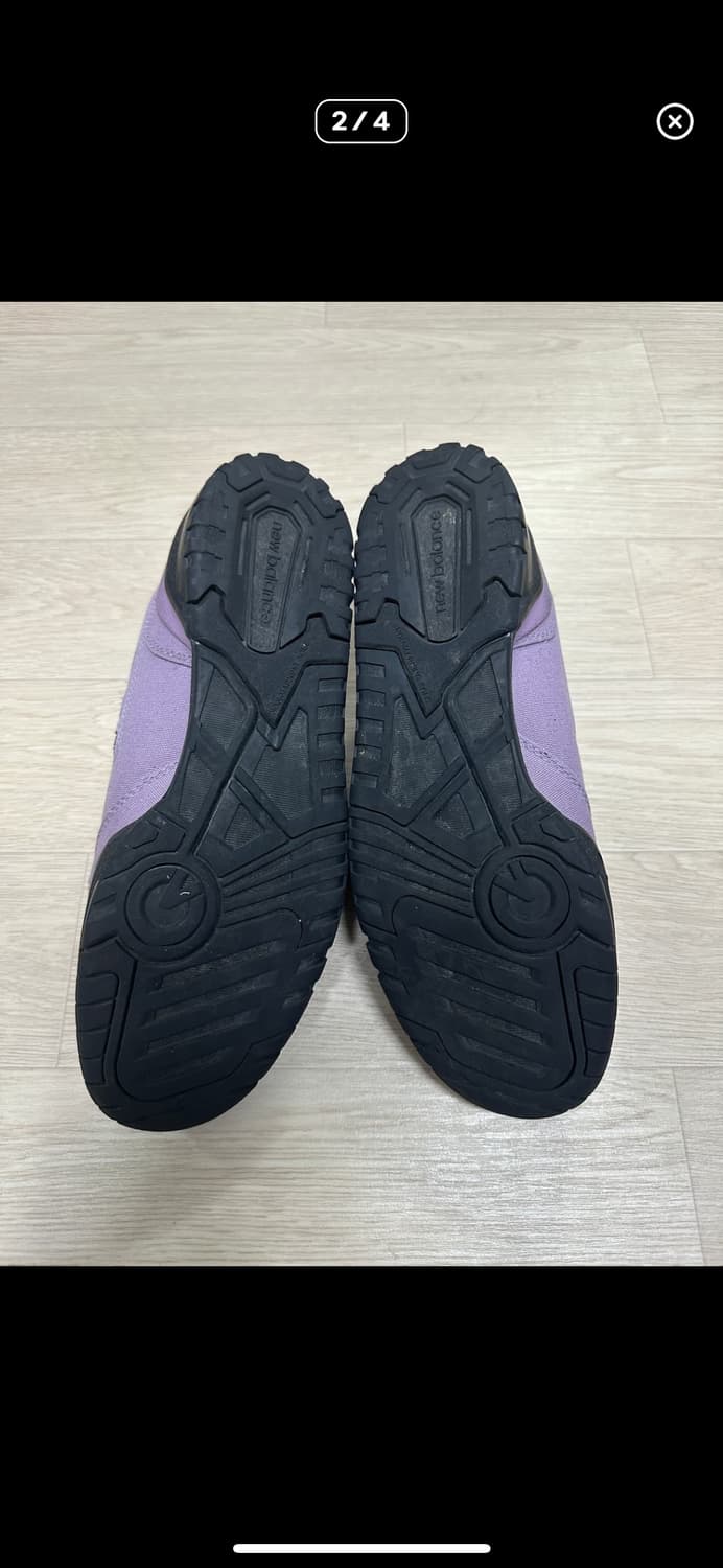 디네댓X뉴발란스 콜라보 550 라벤더 블랙입니다 사이즈 270 사용감과 약간의 이염 있으나 전체적인 톤은 잘 유지중입니다. 여분 신발끈 동봉시켜드립니다. 문의주세요