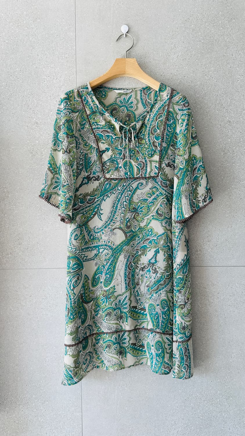 망고 린넨 원피스 캡소매 베이지 미디