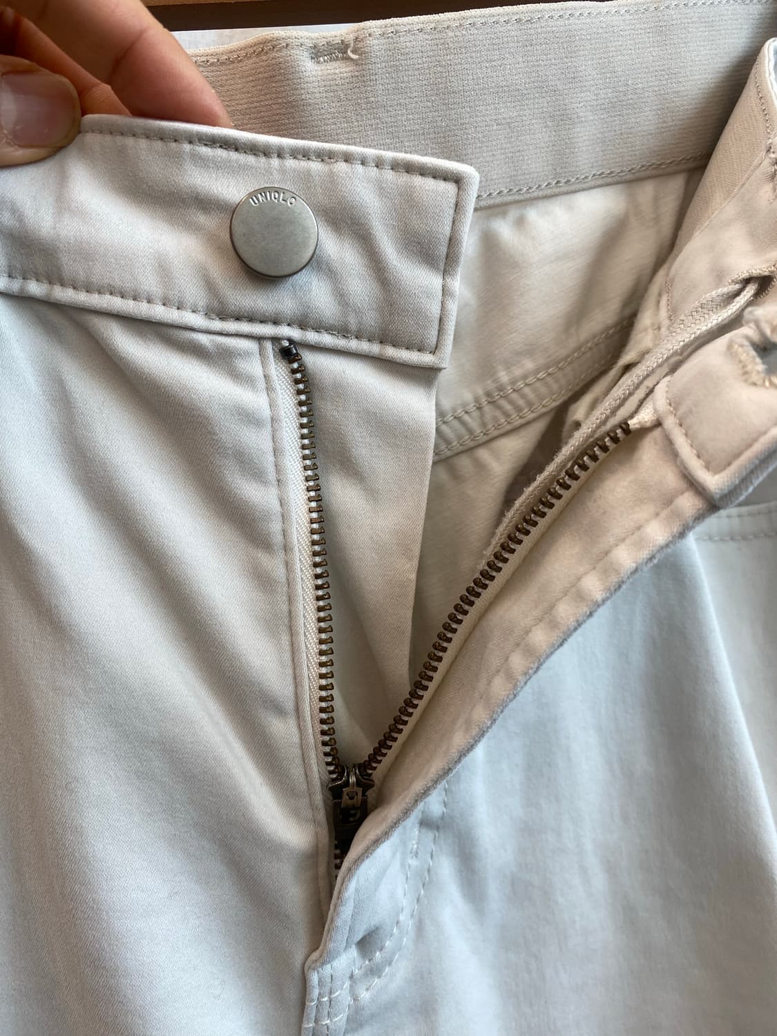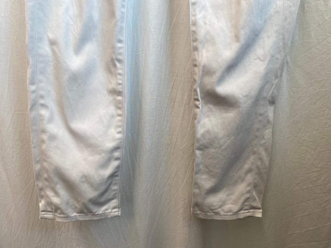 화이트컬러에 그레이가 살짝 믹스된 컬러입니다. 신축성이 있는 소재와 허리밴딩처리로 편안하게 착용가능합니다. 면 95% 폴리우레탄 3% 택사이즈 M 실측사이즈 허리단면 39.5-45 / 30-31인치 추천 힙단면 51 밑위길이 24.5 허벅지단면 30.5 밑단단면 16 총장 99