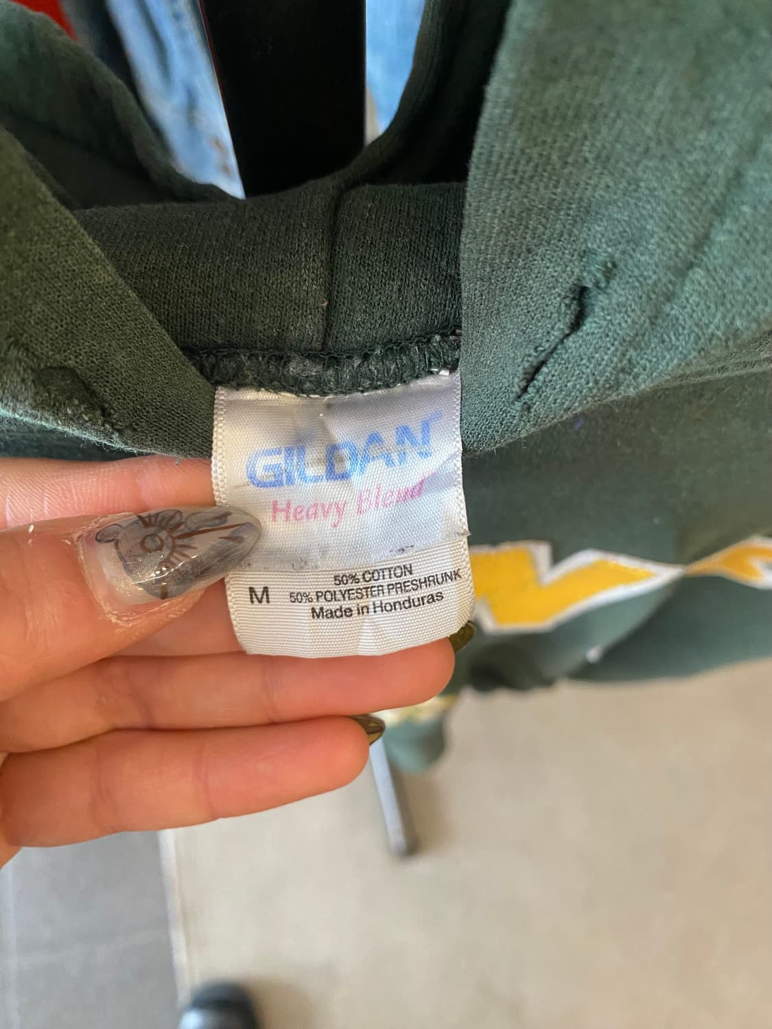 90’s Gildan giants logo green hoodie 미국 캐주얼 웨어 브랜드 `Gildan’ 사의 Giants 로고 후드입니다. Gildan이란 브랜드는 이제는 프린팅, 맨투맨 등 제조하는 업체로써의 이미지가 강합니다만 90년대까진 빈티지의 한 축으로도 어느정도의 이미지를 가지고 있기도 한 브랜드입니다. Giants로고와 함께 밑에 캐릭터도 스티치로 들어가 있어 귀여운 매력의 후드입니다. 초록 노랑의 조합도 매력적이며 데님과 잘 어울리는 녀석입니다. 적당한 두께감으로 간절기때 착용하기 좋은 제품입니다! 적당한 가슴, 어깨 폭이라 자유로운 형태로 착용이 가능할 녀석으로 보이기도 하며 다양한 아웃핏 연출로 착용가능 해, 사이즈가 허용되시는 분들께 권해드리는 녀석입니다! - 총장 64 어깨 58 가슴 56 소매 58 - Size: M (표기) - Price: 3.4 - • 빈티지 특성상 약간의 오염이 있을 수 있습니다. • 교환, 환불이 어려워 신중한 구매부탁드립니다. • 약간의 사이즈 오차(1,2cm)가 있을 수 있습니다. - Contact DM Discount ALSO