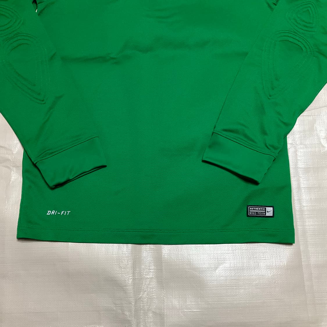 'NIKE DRY-FIT GOAL KEEPER LONG SLEEVE' Size : S (95추천) 총장 70cm / 가슴단면 48cm / 어깨 & 팔 (나그랑) 나이키 드라이핏 골키퍼 롱슬리브 입니다. 깔끔한 컨디션 입고됐습니다. 그라운드 녹색빛과 잘어울리는 녹색 컬러입니다. 드라이핏으로 촉감이 좋으며 나이키 자수도 상태가 좋습니다. 앨보우 부분에 다이빙을 위한 약간의 앰보싱이 들어가있습니다. 꼭 골키퍼용이 아니여도, 각종 스포츠 활동으로 착용하시기 좋은 드라이핏입니다. 사진으로 상태를 최대한 보여드리고자 합니다. 하지만 빈티지 상품의 특성상 미처 발견하지 못하거나 사진상으로 담기지 않는 대미지가 있을 수 있습니다. 구매 시, 유의 부탁드립니다. 문의사항은 언제든지 편하게 연락 주세요! #nike #nikelongsleeve #nikedryfit #나이키 #나이키드라이핏 #나이키골키퍼 #나이키저지