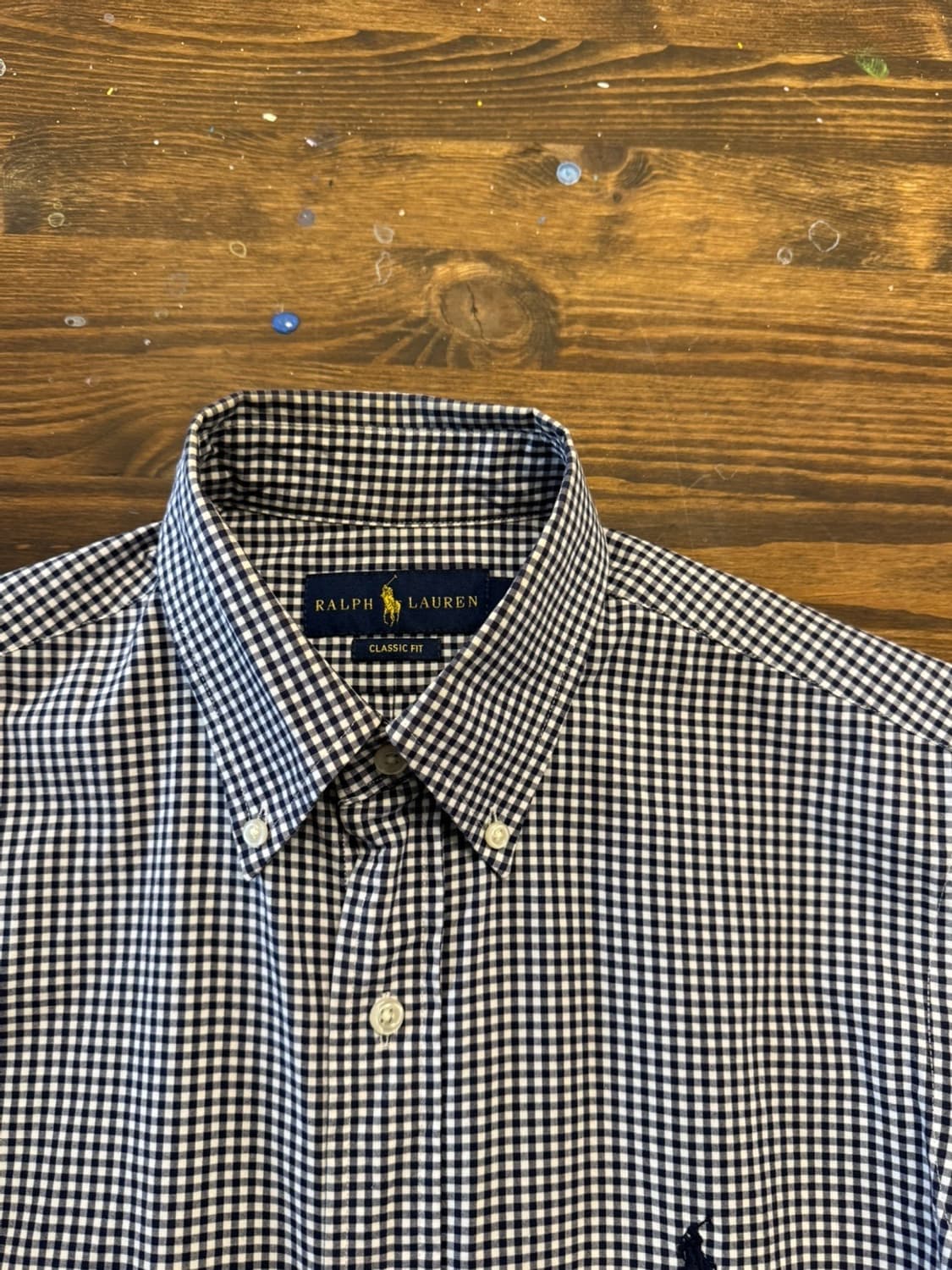보다 드레시한 폼으로 연출된 랄프로렌의 버튼다운셔츠입니다. 깅엄체크의 높은 범용성을 지닌 모델로 사이즈 국내 95ㅡ슬림 100 권합니다. 감사합니다.