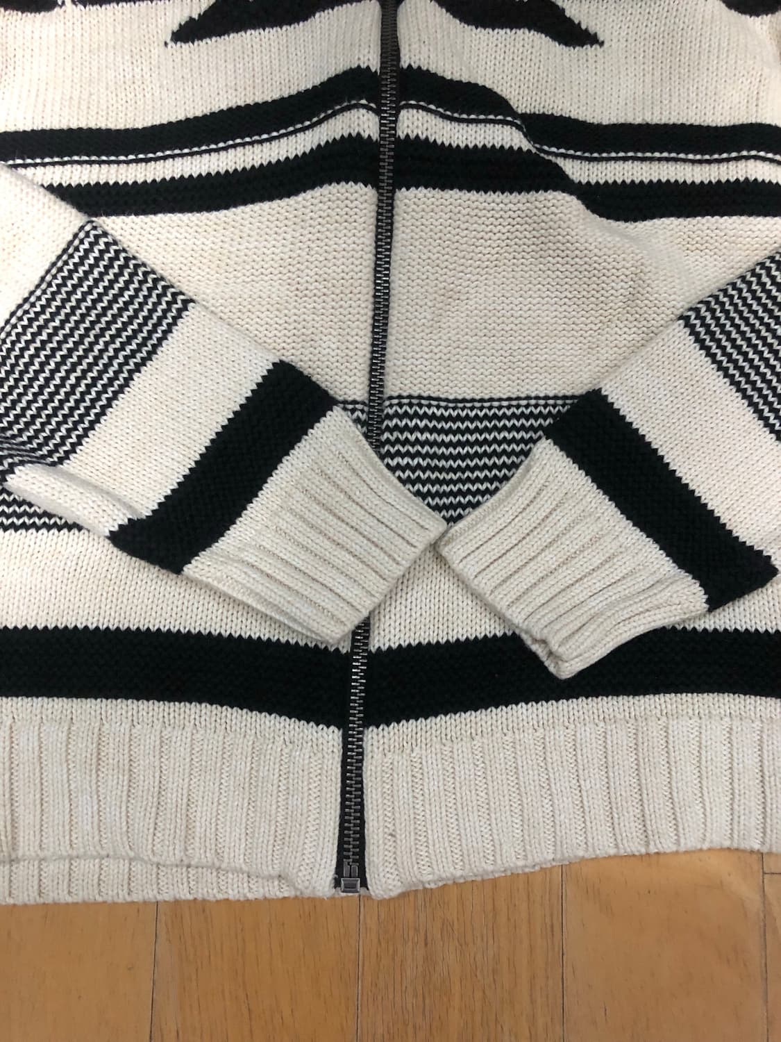 로렌 랄프로렌의 클래식한 치마요 문양이 멋진 집업 가디건 클래식한 스타일이라 유행에 상관없이 컨디션 양호합니다 어깨 35 가슴 45 소매 61 총장 58
