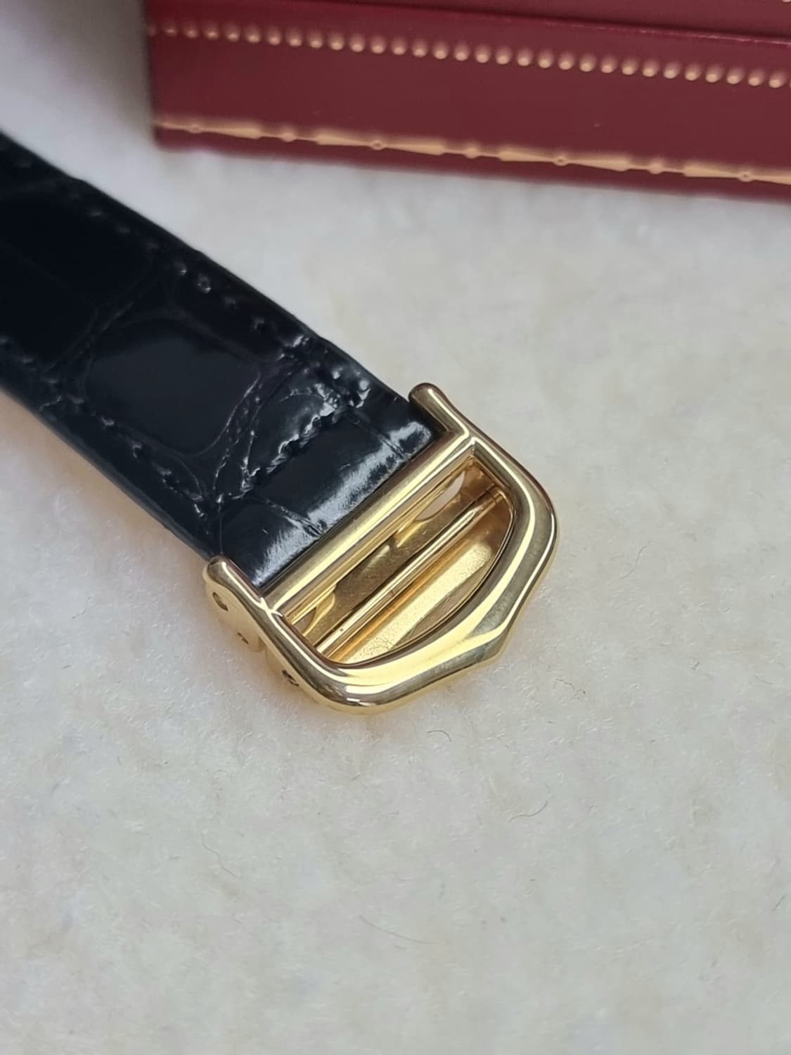 까르띠에 빈티지 탱크 머스트 XL 아라비아숫자판 골드 디버클 시계(남녀공용) 까르띠에 아라비아 숫자 다이얼과 입체적인 까르띠에 로고가 조화를 이루며, 우아하면서도 세련된 매력을 더하는 모델입니다. 타일러 더 크리에이터'가 착용한 스몰 사이즈 모델로도 주목받으며, 클래식하면서도 감각적인 스타일을 완성하는 아이코닉한 시계로 평가받고 있습니다. XL 사이즈 특유의 존재감으로 손목 위에서 한층 더 강렬한 인상을 남깁니다. 원터치 버클 역시 까르띠에 정품이며, 구성품도 풀구성으로 제공됩니다. -브랜드 : 까르띠에 (Cartier) -모델명 : 탱크머스트 라지 -구동방식 : 쿼츠 (Quartz) -연식 : 90년 후반 -소재 : 실버(925)에 18K 골드 도금 -사이즈 : 26mm X 33.5mm -스트랩 : 악어스트랩 & 디버클 -구성품 1. 시계본품 2. 까르띠에 정품 케이스 3. 까르띠에 정품 여행용 파우치 4. 까르띠에 정품 쇼핑백 5. K1 정품 보증서 (퀄리티 등급: Very Good) 본 제품은 까르띠에 공식 홈페이지에 등록된 모델로, 까르띠에 공식 서비스센터를 통한 A/S가 가능합니다. * 판매내역 없고, 찔러보기 하시는분 연락하지 마세요 * 예약시 예약금 20만원 * 네고불가 / 교환불가