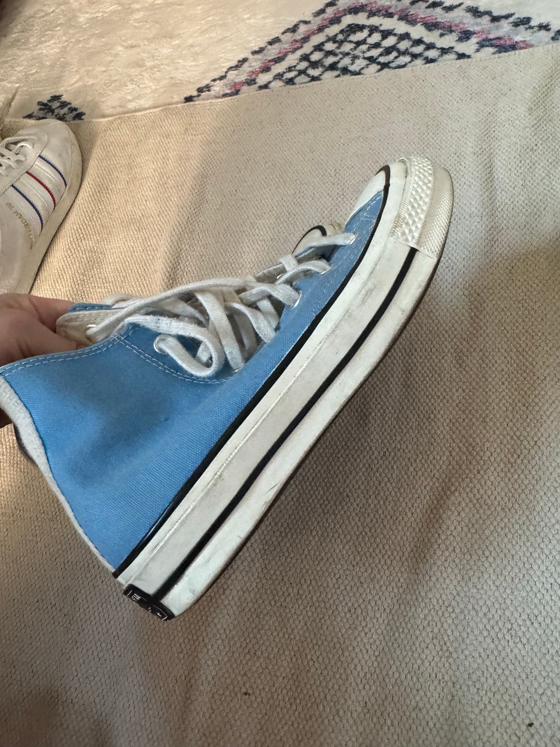 컨버스 올스타 요즘 보기 힘든 아쿠아블루이구요 5번 이내 착용했고 사용감도 적어요!
