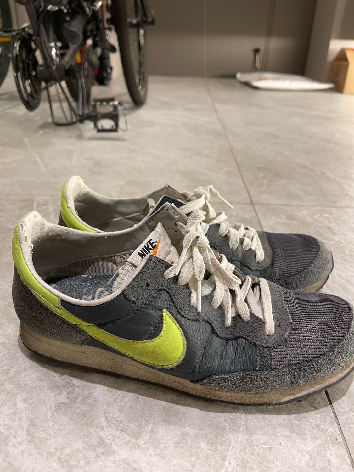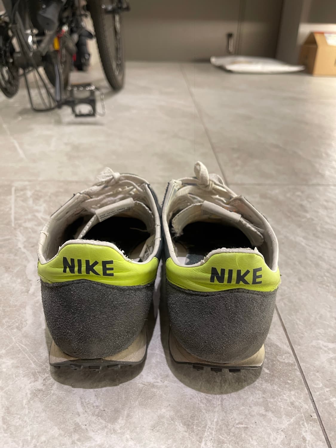 회색과 네온 그린 색상 조합, 스웨이드와 나일론 소재 사용인 빈티지 복각제품 입니다. 세월의 흔적은 좀 있지만 구하기 힘든 색상이라 소장의 가치도 있다고 생각합니다. 발목부분 흰 비닐부분만 좀 닳았고 나머지는 큰문제 없습니다. 닳은부분은 복원이 가능한걸로 알고있습니다. 사이즈는 270인데 저에게 조금 작아서 착용안한지 10여년 정도 되었고 보관만 해둔 상태입니다.