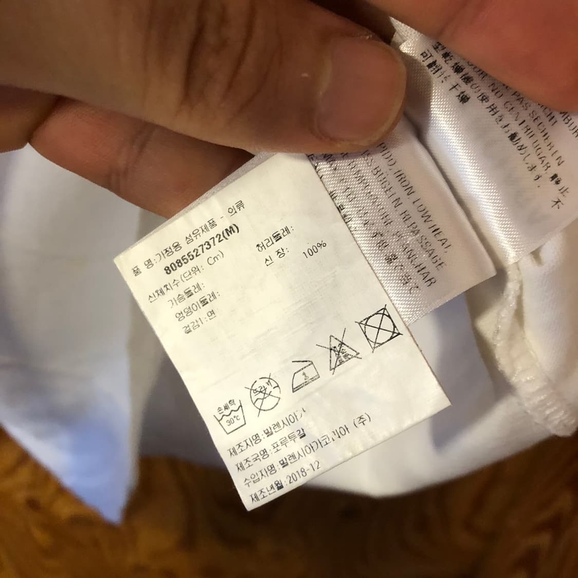 매장가격 90만원쯤 하던 기본 스몰로고 발렌시아가 티셔츠 입니다. 코튼 소재 제품이며 여성 제품이며 M 사이즈로 국내 44 ~ 44반 정도의 사이즈 감입니다. 총장 61cm / 팔 16cm / 어깨 37cm / 가슴 44cm 쯤 대략 나옵니다. 제품 상태는 기본적인 사용감과 하단 약간 뭐가 묻었는데 세탁은 한 번도 하지 않았습니다. 착용시 크게 티가 나지 않아서 따로 세탁은 하지 않았습니다. 좋은 거래 원합니다.