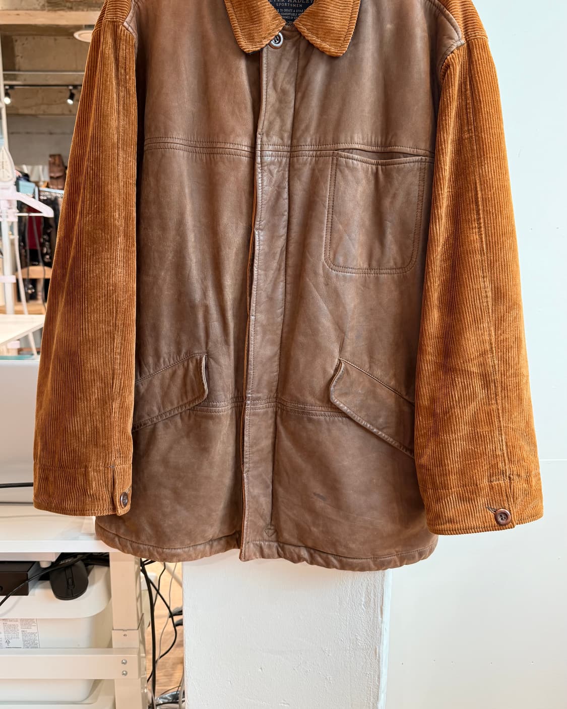 피터 헤들리 브라운 제뉴언 레더 코듀로이 자켓 사이즈 52 어깨 51 소매 61 가슴 64 기장 83