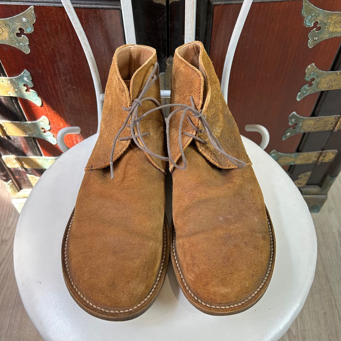 The viridi anne 스웨이드 부츠 Size : 2(280) Price : 318,000 Condition : 8/10 Material : 레더 100% 일본 아방가르드 브랜드 the viridi anne의 부츠입니다. 브라운 컬러의 스웨이드로 제작되었으며, 날렵한 라스트와 낮은 밑창, 뒷 솔기의 스카스티치 디테일에 특유의 빈티지한 질감을 살린 스웨이드의 텍스쳐로 브랜드의 아방가르드한 무드를 잘 담아낸 제품입니다. 제품구성은 신발 단품입니다. 실측은 마지막 사진 참조 부탁드립니다. 세컨핸드 특성상 교환, 환불은 불가합니다. 가격협상 가능하오니 부담없이 문의주세요.