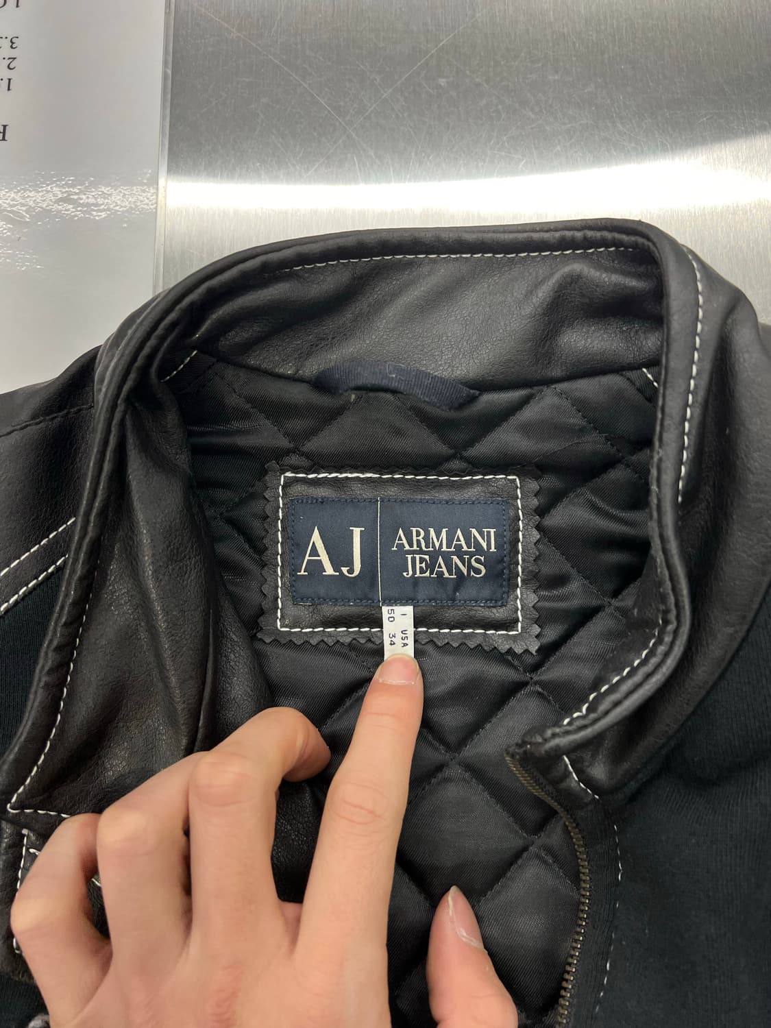 90s 아르마니 진스 하이브리드 PVC 바이커 자켓 사이즈 50 어깨 54 가슴 63 기장 76 소매 24.5
