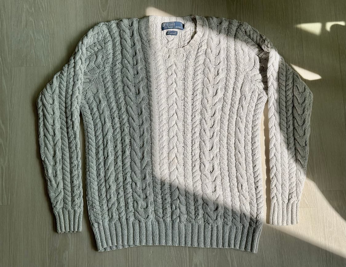 폴로 랄프로렌 화이트 케이블 핸드 니트입니다 - 브랜드: 폴로 랄프로렌 - 색상: 화이트 - 소재: 면 100% - 핸드 니트 제품이에요 총장 63 어깨 43 가슴 54 소매 60 일반 캐이블 니트보다 굵직하고 자잘한 디테일이 많이 들어간 퍼플라벨급의 핸드니트 표기 사이즈 95 이지만 크게 나와서 M-L 사이즈 입니다 본인 185/80 건장한 남자 체격에 딱맞게 입었습니다 타 사이트에서 25만원에 판매중인 상품입니다 4/29일 기준 드라이완료함
