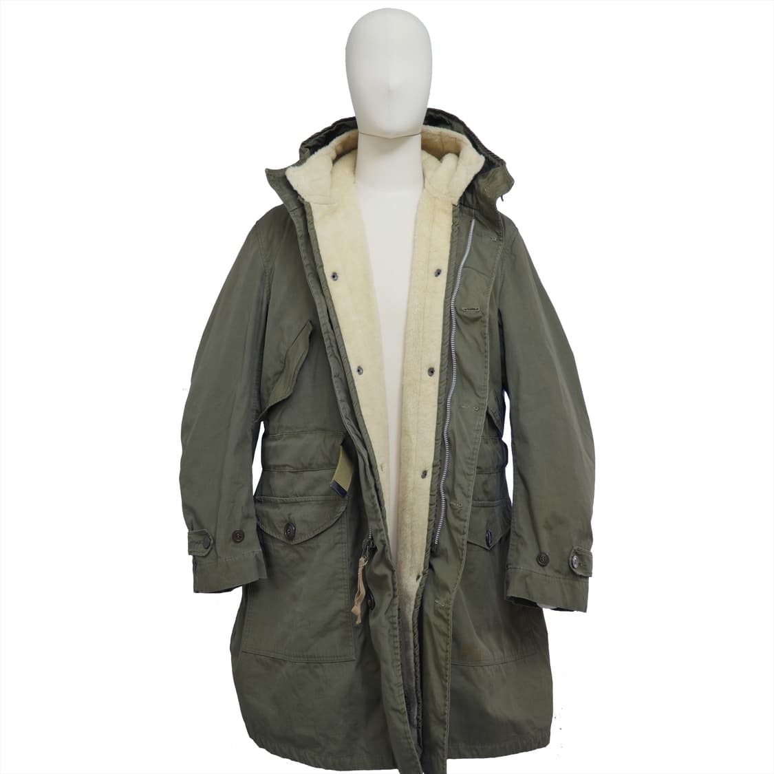 1950년대 빈티지 한국전쟁 크라빈 파크 클로즈 M1947 M47 미공군 콜드웨더 오버코트 장진호 파카 1950's Vintage Korean War Kravin Park Clothes USAF M1947 Cold Weather Overcoat Frozen Chosin Parka 표기 사이즈 : LARGE 실측 : 가슴 절개선 단면 72cm, 어깨 단면 50cm, 어깨에서 소매끝까지 67cm, 겨드랑이에서 소매끝까지 47cm, 밑단 69cm, 후드 제외 총장 102cm (라이너를 분리하여 셸만 측정하였습니다.) MADE IN USA 1950년대 한국전쟁 중에 미공군에게 보급 된 혹한기용 오버코트 밀스펙(MIL-O-1952) 표기 된 크라빈 파크 클로즈사(Kravin Park Clothes)에서 공군용으로 제조 2 in 1 플레인 위브 포플린 코튼 셸 외피와 울 파일 라이너 내피 결합 및 분리형 녹색 양극산화 처리 된 패그 투스 방식의 탤런 지퍼 외피 원단은 전반적으로 양호하나 부분적으로 얼룩과 데미지 존재합니다. 사진을 참고해주세요. 최대한 상세하게 첨부하였습니다. - 후드 스트링 스토퍼 가죽 부분 경화 및 얼룩 - 전면 몇군데 미세 얼룩 - 후면 오른쪽 상단 세로 다트 부위 가로 다트로 수선 흔적 존재 (안쪽에 수선 흔적 없음) - 후면 밑단 데미지 - 연식을 감안하면 그레이트 컨디션 입니다. 내피(라이너) 상태는 니어 민트급 입니다. 부자재 모두 온전한 상태. 최근 외피 셸 및 내피 라이너 모두 분리하여 고급의류 전문 세탁소에서 개별 세탁 완료되었습니다. 바로 입으시면 됩니다. 감사합니다. * 이블맨의 옷장(EVILMAN'S CLOSET) 공통 안내문. - 연식과 사용감이 있는 상태이니 빈티지 의류나 중고 의류를 이해 할 수 있는 분만 구매해 주시길 바랍니다. - 사업자가 아닌 순수 개인 물건을 판매하고 있으니 제품 상태에 예민 하거나 의구심이 드는 분은 자세하게 문의해 주세요. 성심 성의껏 답변해 드립니다. 상품을 직접 보고 싶으신 분은 직거래로 거래 하실 수 있습니다. 이 경우 직거래 요청을 해주셔야 하며, 상호 협의하에 일정을 조율하고 직거래 위치로 오셔야 합니다. - 택배는 오직 우체국 택배만을 이용 합니다. 가장 안전하고 정확한 운송방식 입니다. 10만원 이상부터 대게 박스비 및 택배비 판매자가 부담하며(일부품목 제외), 10만원 미만은 품목마다 다르지만 대게 폴리백으로 포장하여 착불로 발송합니다. - 사이즈를 측정하는 방식이 사람 마다 차이가 있으므로 실측이 정확하지 않고 부위별로 미세한 오차가 있을 수 있는 점 참고해주세요. - 문의 후루츠패밀리 DM. 감사합니다. @evilman_closet