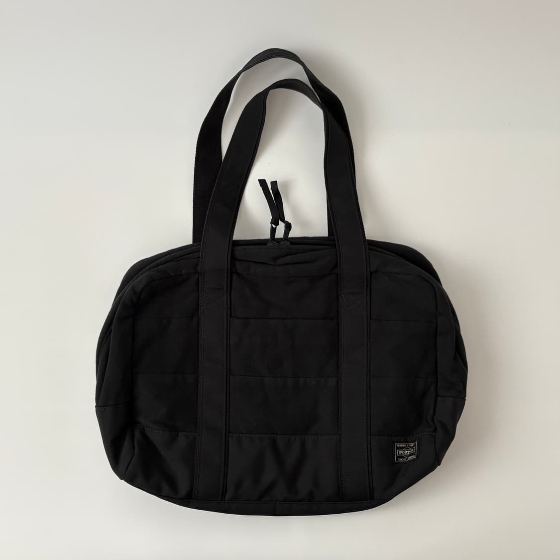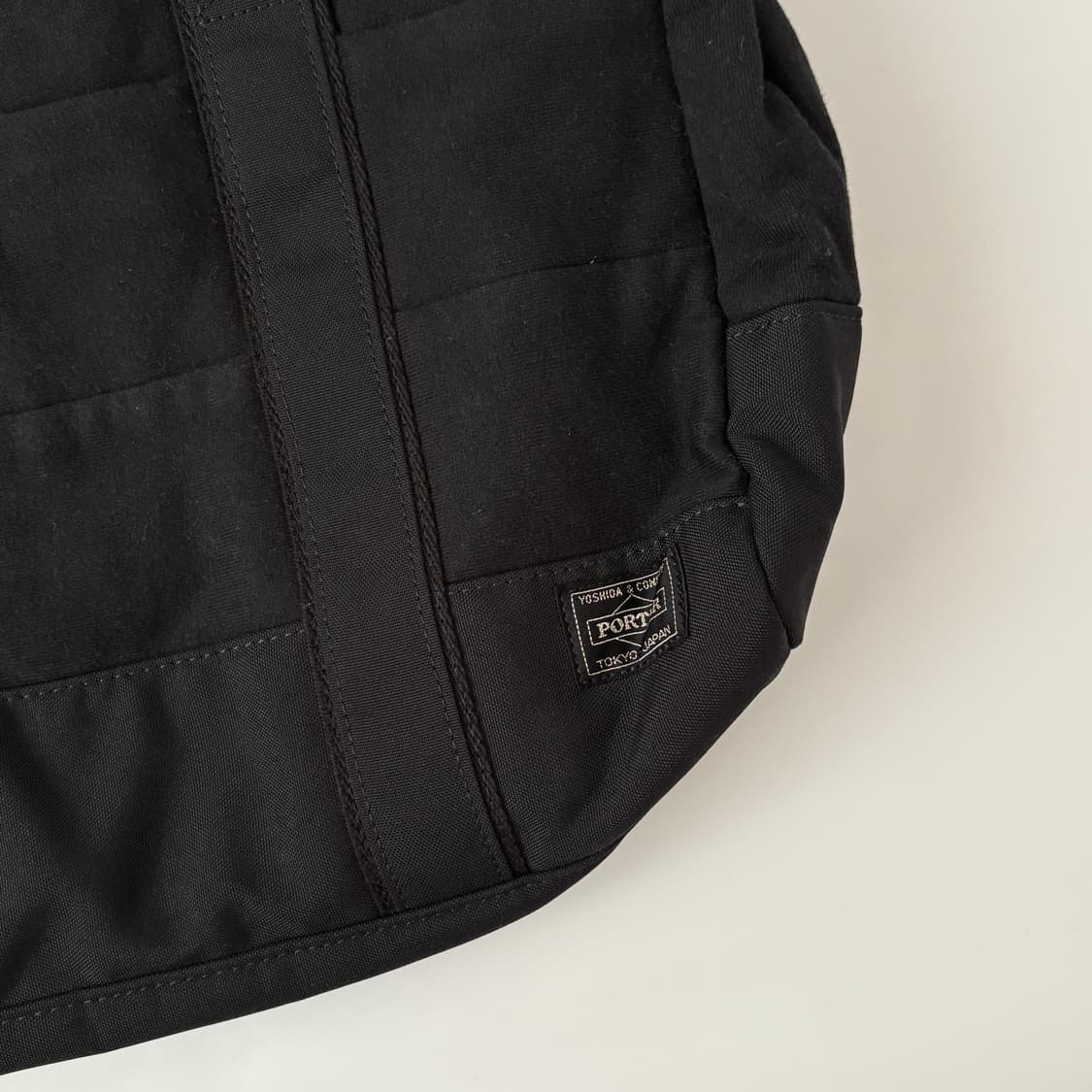 PORTER - sweat tote bag (black) *사이즈: W375/H295/D120 (mm) *컨디션: 아주 좋은 컨디션 *색상: black *두가지 다른 질감의소재를 사용하여 지면에 닿기 쉬운 부분은 내구성이 좋은 나일론 소재와 나머지는 부드러운 감촉의 스웻 소재를 사용. *남녀 상관없이 착용할 수 있는 사이즈.