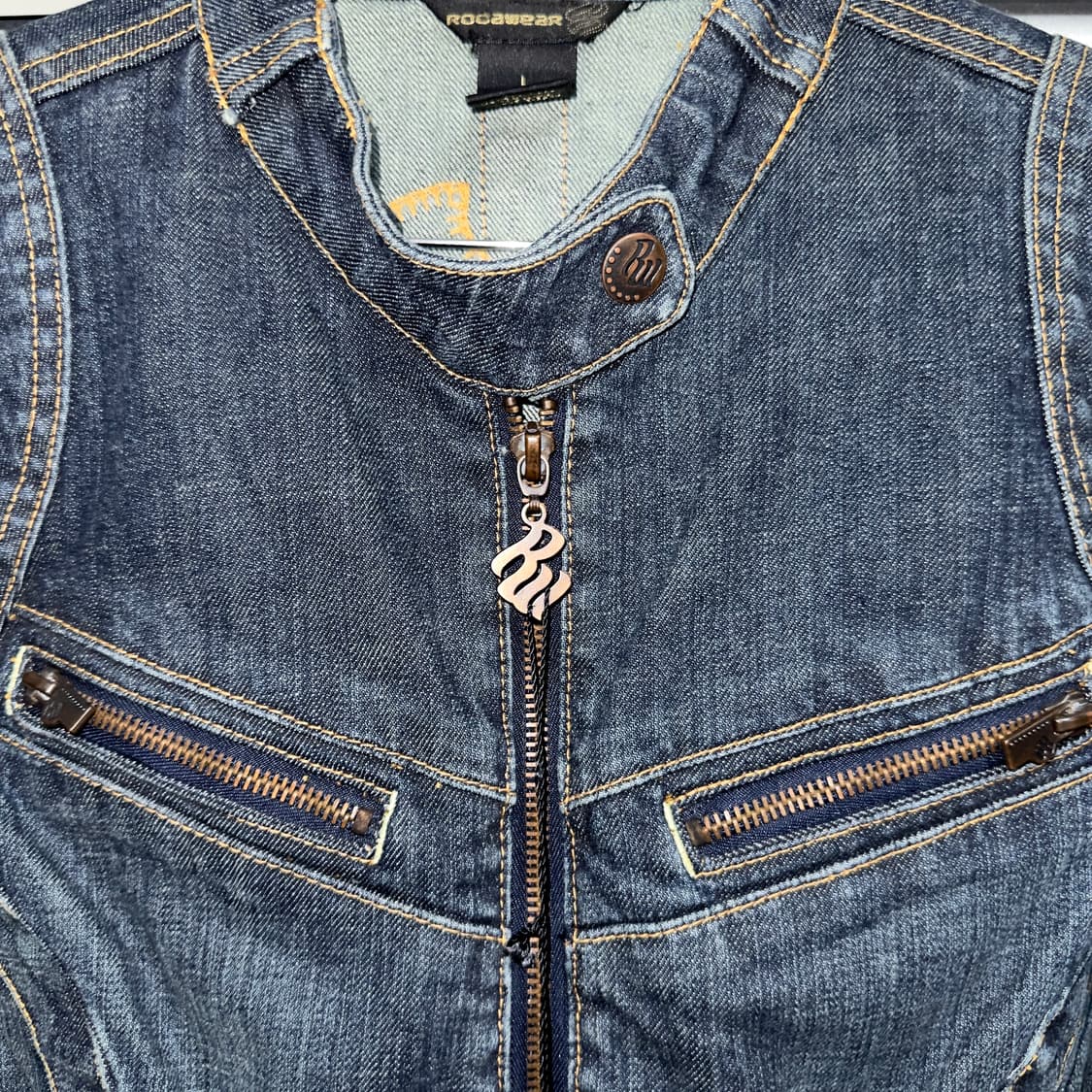 ⠀⠀⠀⠀⠀⠀⠀⠀⠀⠀⠀⠀ 00s DEADSTOCK ROCAWEAR FITTED DENIM JACKET SIZE: L / BUST 50 / LENGTH 55 / SLEEVE 77 Price: 26만9천원 (미국 수입품/데드스톡 새상품)