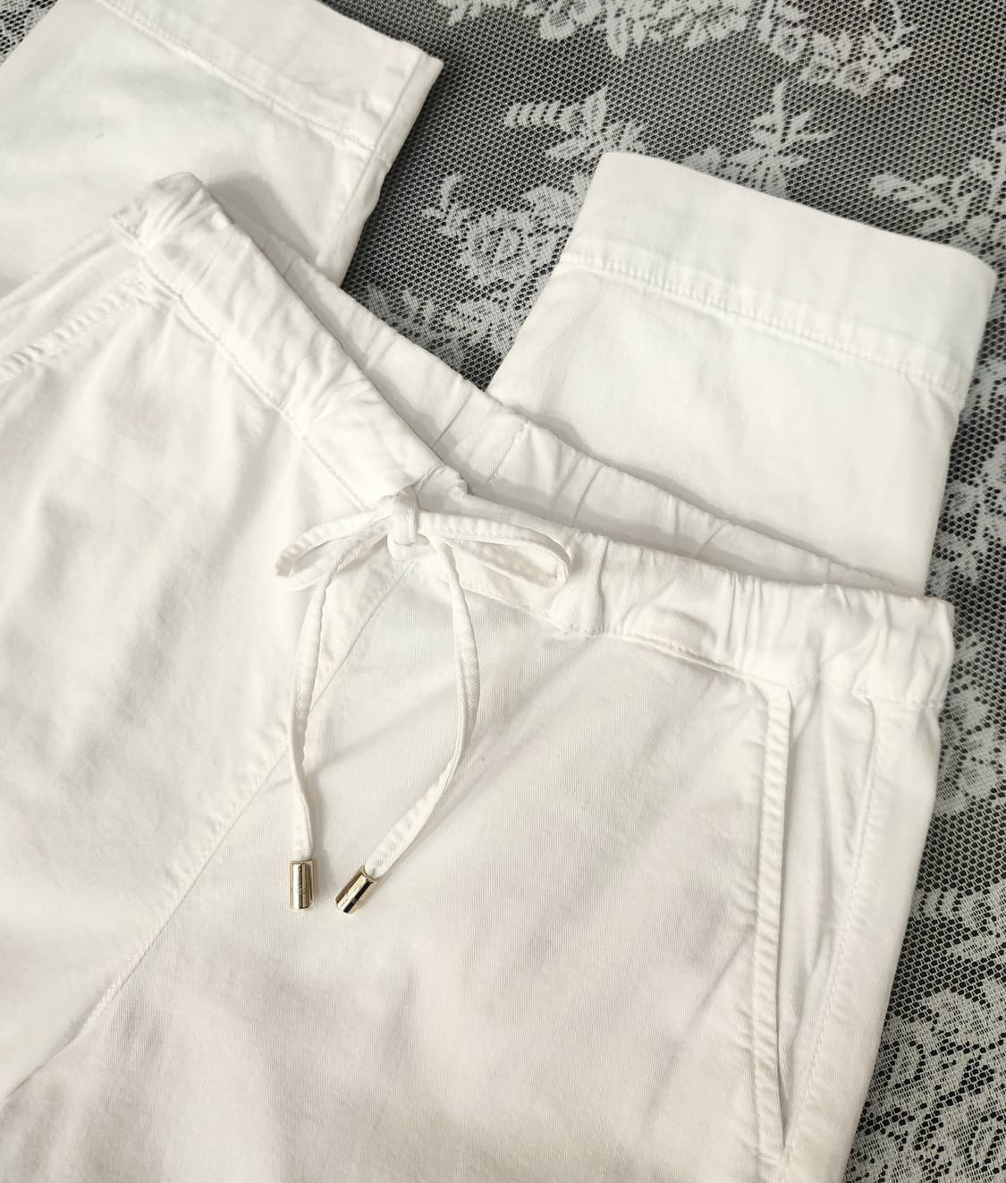 막스마라 화이트 밴딩 슬랙스 새상품입니다. 새상품으로 깔끔한핏이 멋진 명품바지예요. S사이즈 새상품 허리34 밑위27 총장92