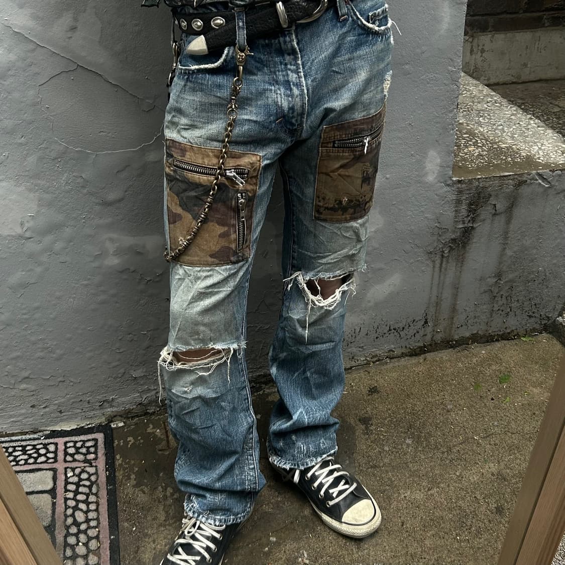 2000s hide aways 워싱 데미지 디테일 데님팬츠