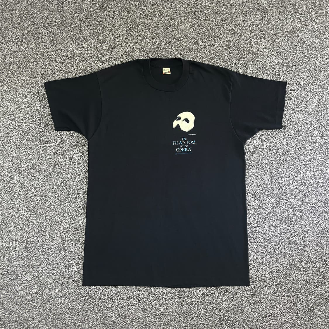 Vintage opera shirt (0397) XL (tag) 가슴52 어깨47 소매18 길이74 (cm) 1980년대 후반 미국 제조 면50+폴리50, 튜블러 밑단, 소매 싱글스티치 1986년 오페라의 유령 프로모션 티셔츠입니다. 80년대 티셔츠 특징인 50/50 원단의 핏하고 부드러운 착용감이 좋습니다. 상태 아주 좋습니다. [안내] 모든 상품은 빈티지(중고)입니다. 사용감 및 하자가 있을 수 있습니다. 이로 인한 교환 및 환불은 어렵습니다. #빈티지티셔츠 #빈티지반팔 #오페라의유령 #프로모