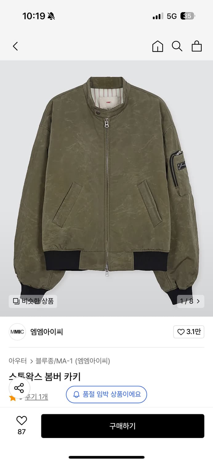 지금 날씨에 딱 입기 좋아요! 크롭인데 부담스러운 기장 아니라 다리 길어보여요 오버한 실루엣과 크롭한 기장으로 트렌디한 스타일을 연출하는 봄버 자켓입니다. 왁스 코팅된 나일론 소재를 사용하여, 사용 패턴에 따라 변하는 빈티지한 크랙감이 특징입니다. 싱글 라이더 자켓의 카라 디자인과 블랙 컬러 배색 립, 소매부터 뒷판으로 이어지는 셔링 라인, 그리고 입체적인 지퍼 포켓이 돋보입니다. 또한, 4온즈 솜을 사용해 보온성을 높였습니다.
